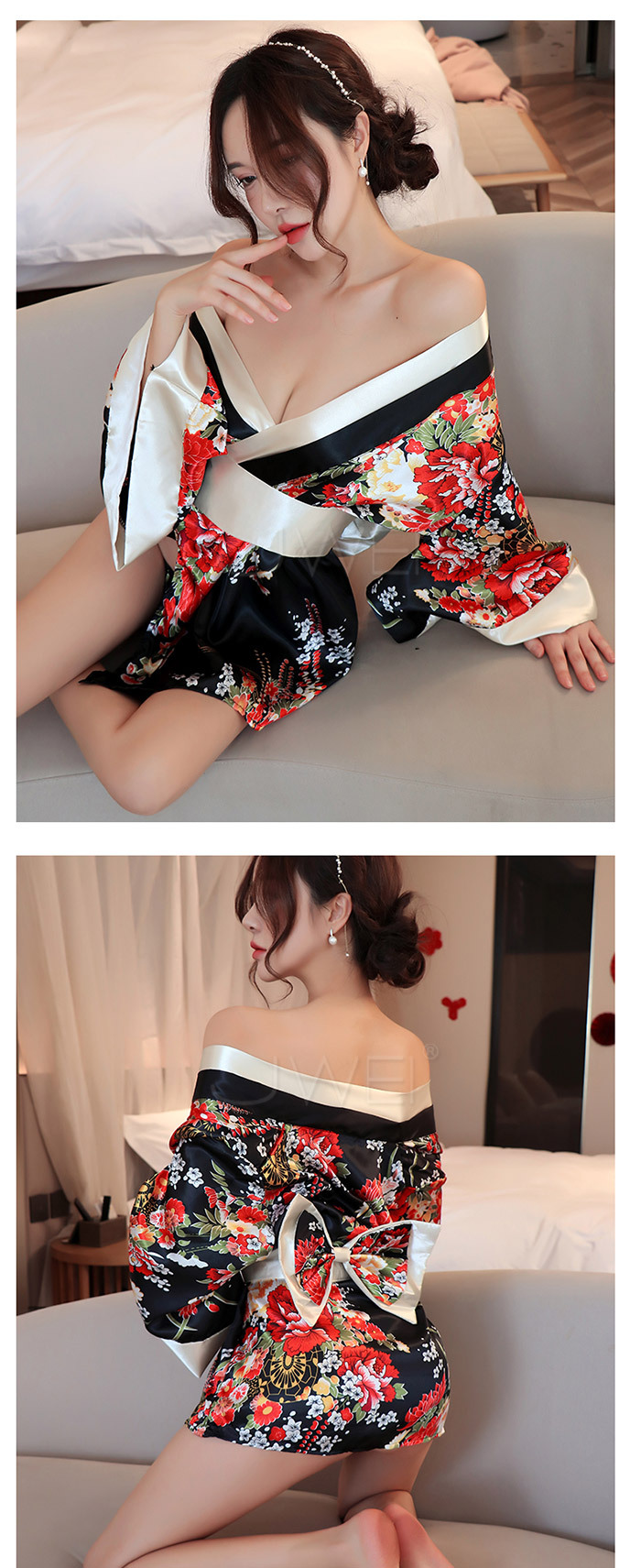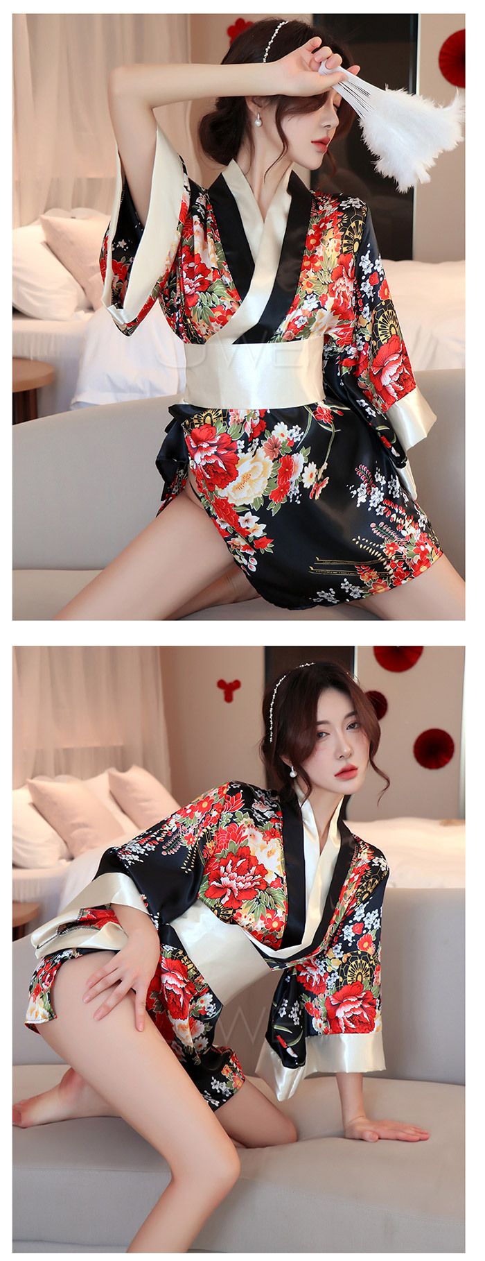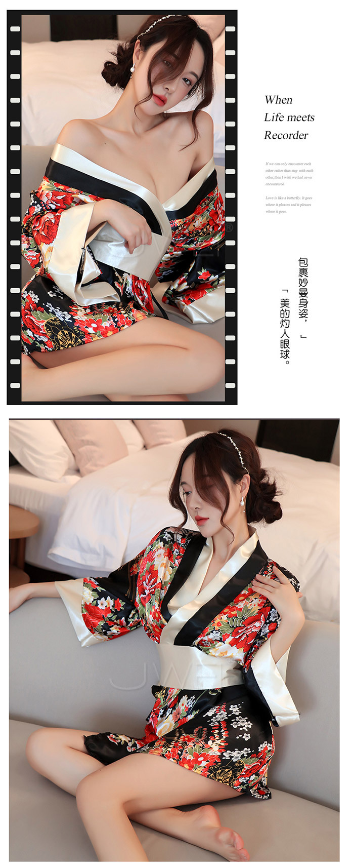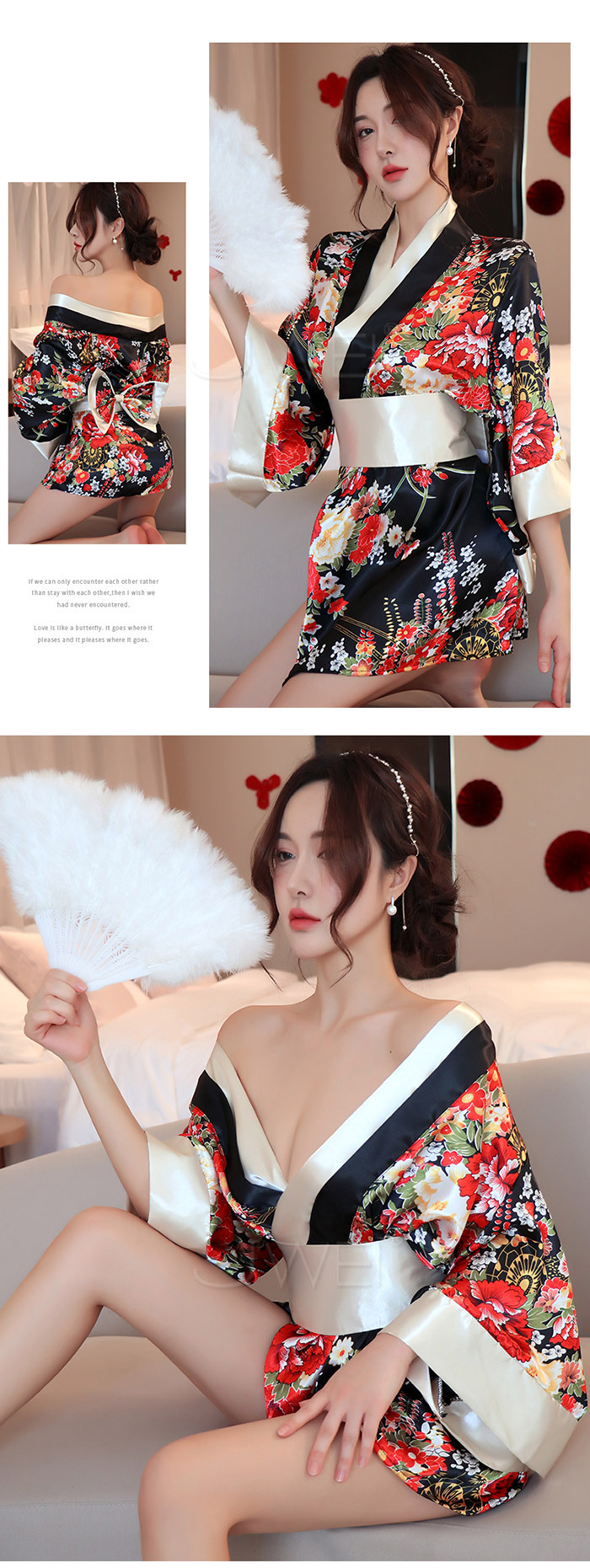 ◇◆花莎情露.性感誘惑開襟V領印花日式和服套裝3件組(紅)◆◇