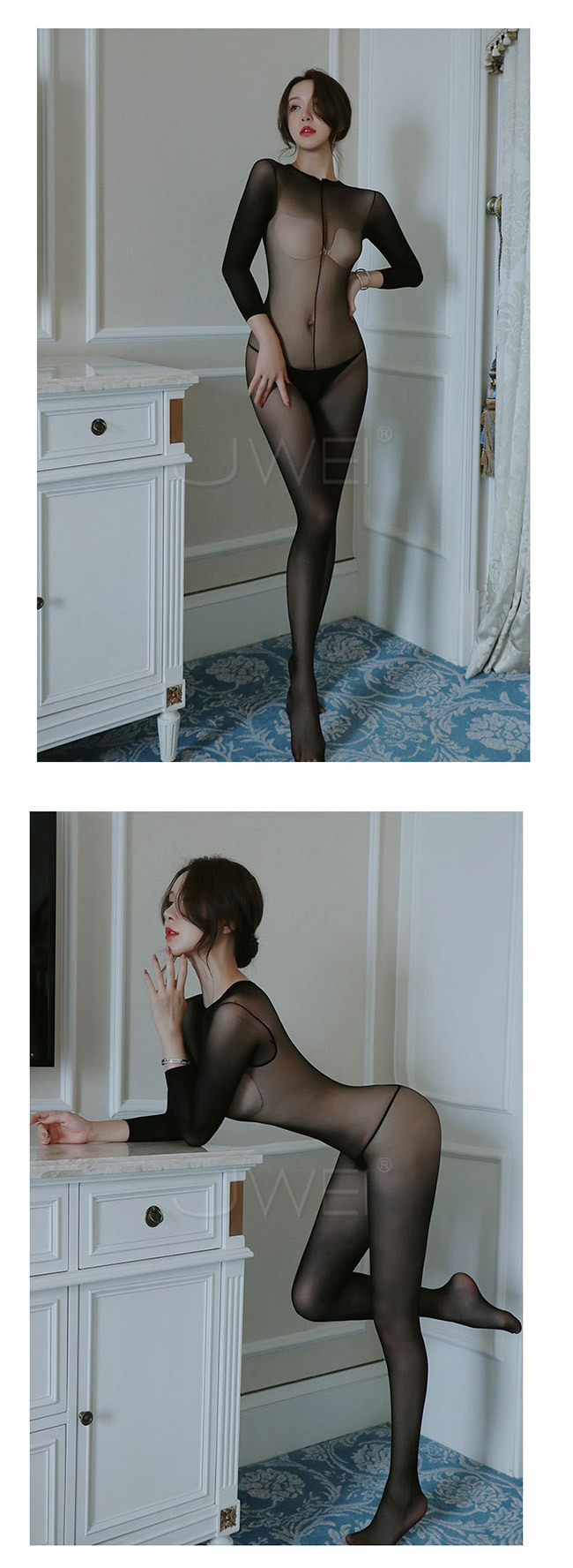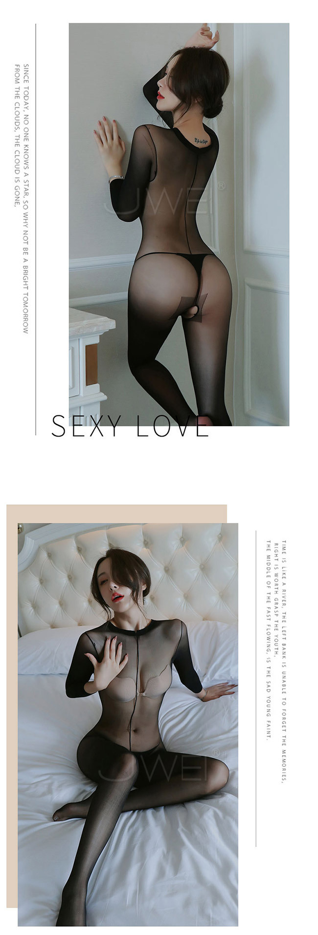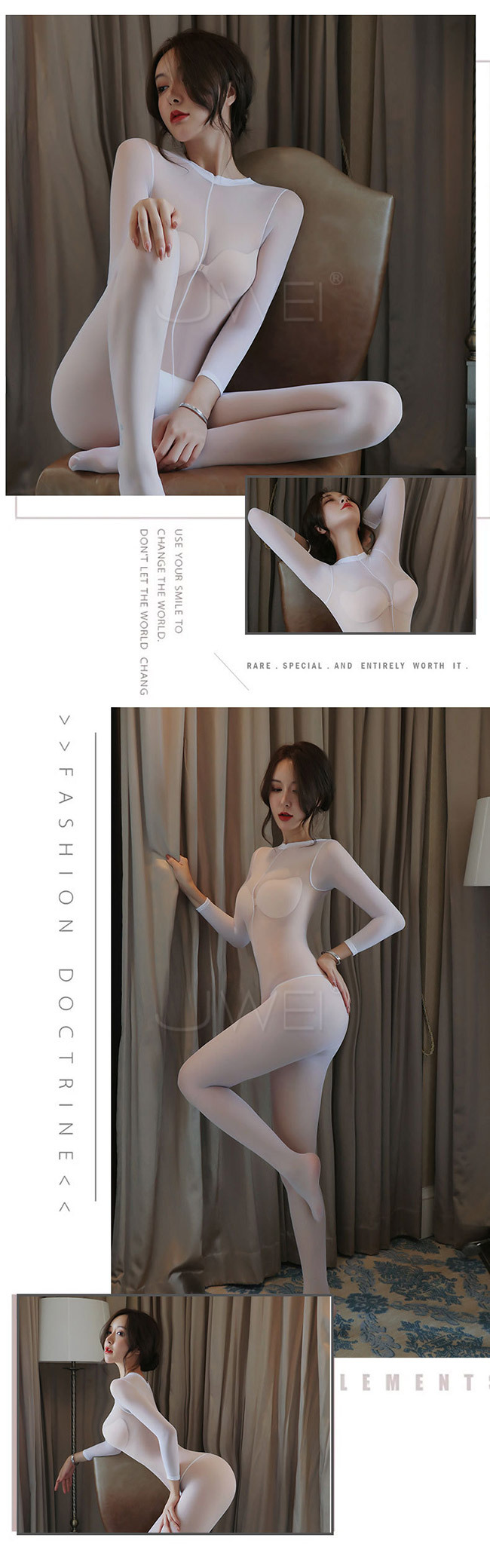 催情迷霧.性感透膚開襠連身貓裝(白色)