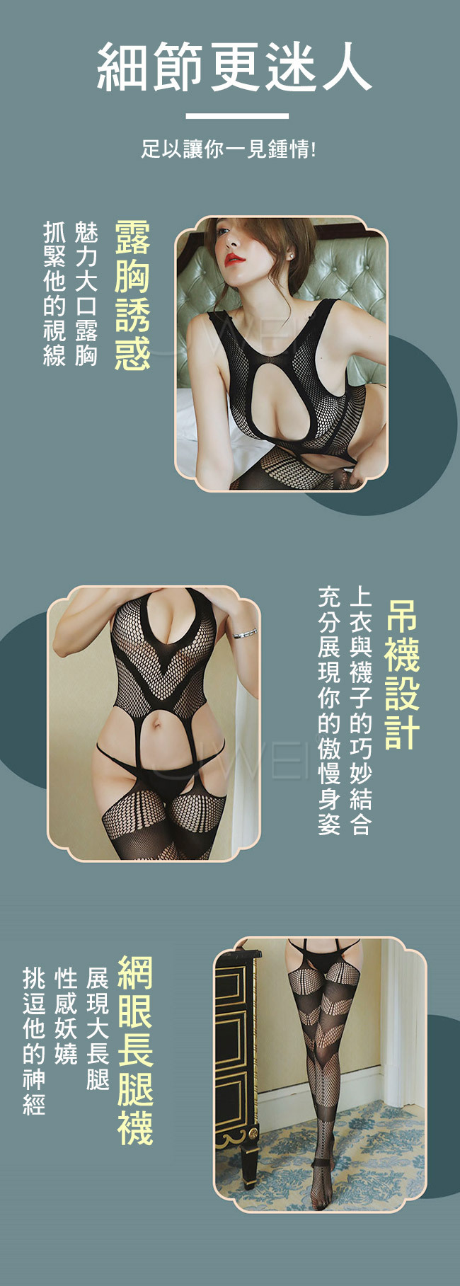 ◇◆靜待愛戀.性感胸前圓孔透視鏤空美背吊襪連身貓裝◆◇