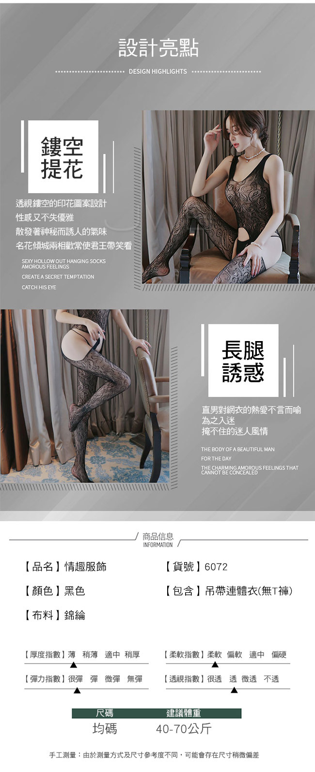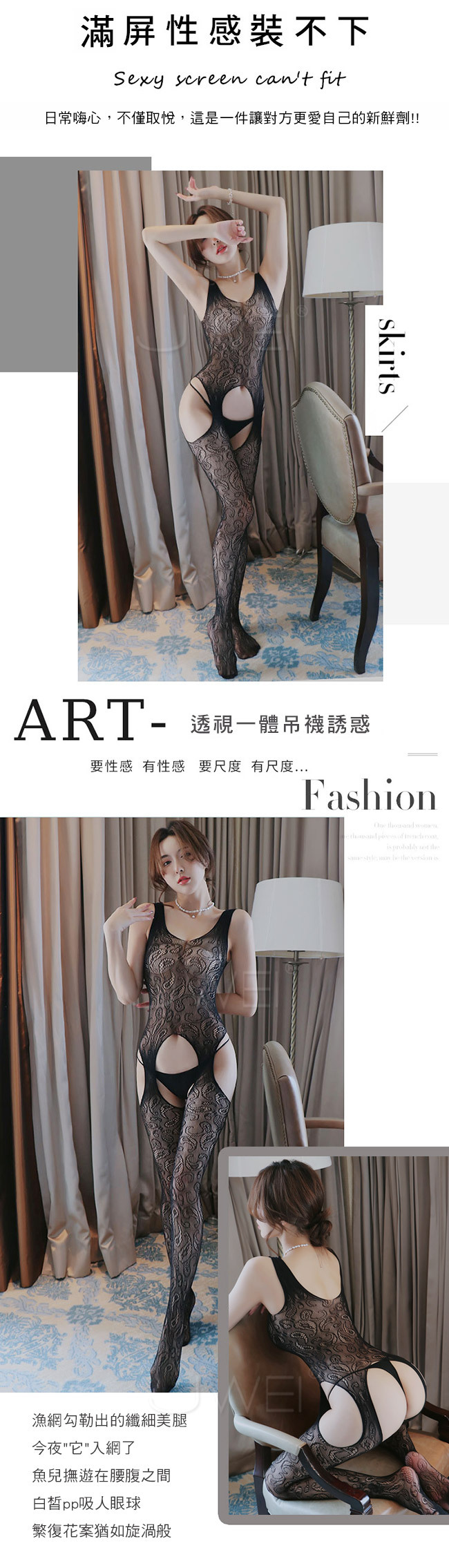 ◇◆靜待愛戀.魅力修身鏤空提花透視一體吊襪誘惑連身貓裝◆◇