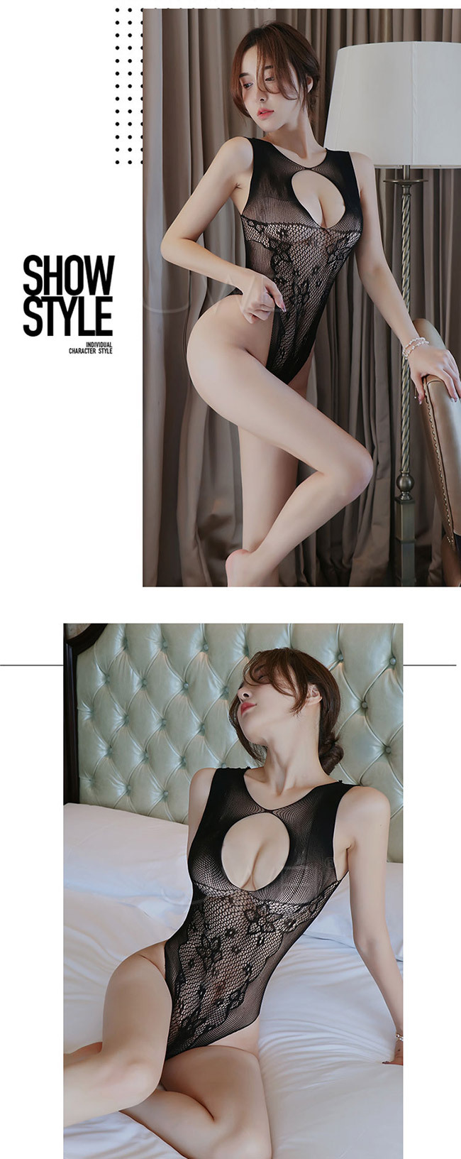 ◇◆暗夜情慾.復古提花水滴鏤空露胸透視連身衣◆◇