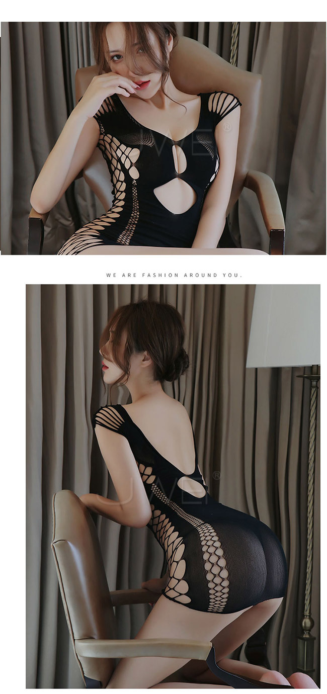 ◇◆情到深處.性感露胸兩側交織鏤空連身包臀連身裙◆◇
