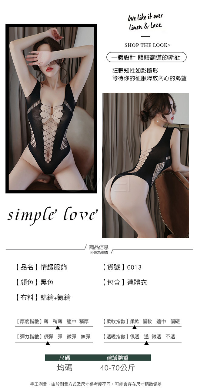 ◇◆媚誘之約.性感狂野前後側交織鏤空連身衣◆◇