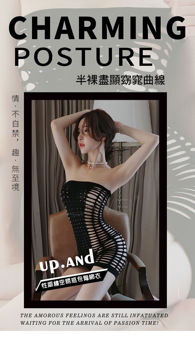 ◇◆情香浮動.性感平口領鏤空網洞包臀連身裙◆◇