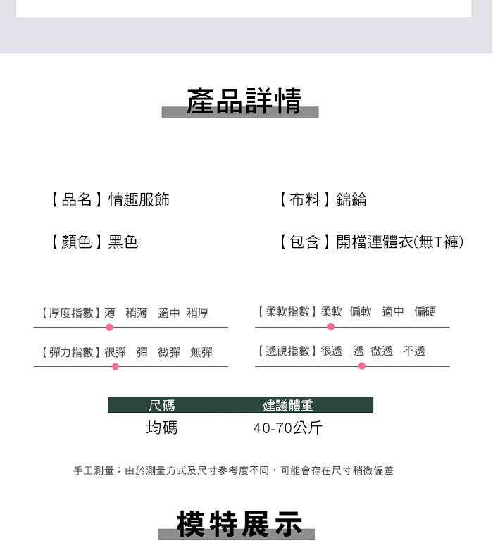 ■內容物:開襠連身衣x1(無T褲)