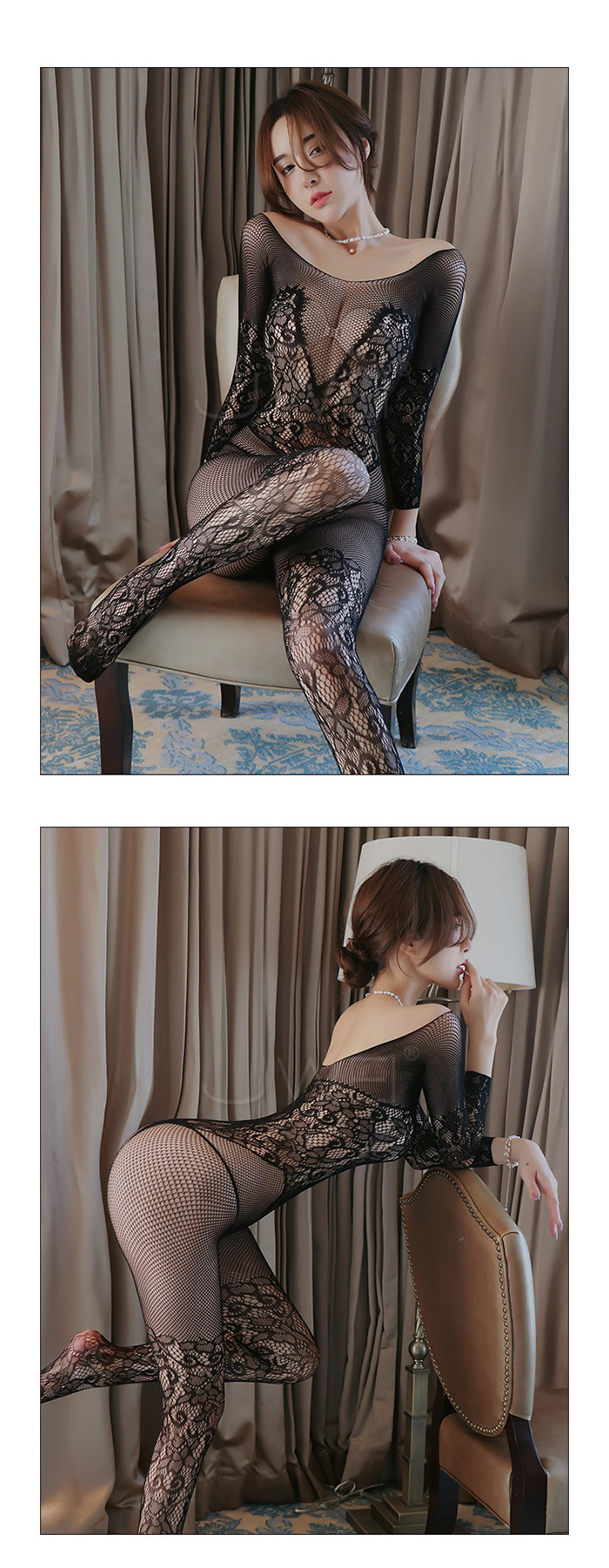 ◇◆獵艷愛戀.魅力修身透視鏤空提花火辣開檔連身貓裝◆◇