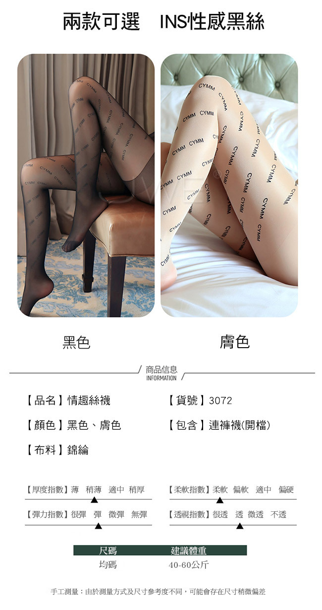 月夢可心.性感透膚霧面質感字母開襠絲襪(膚色)