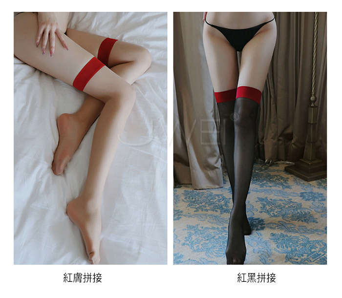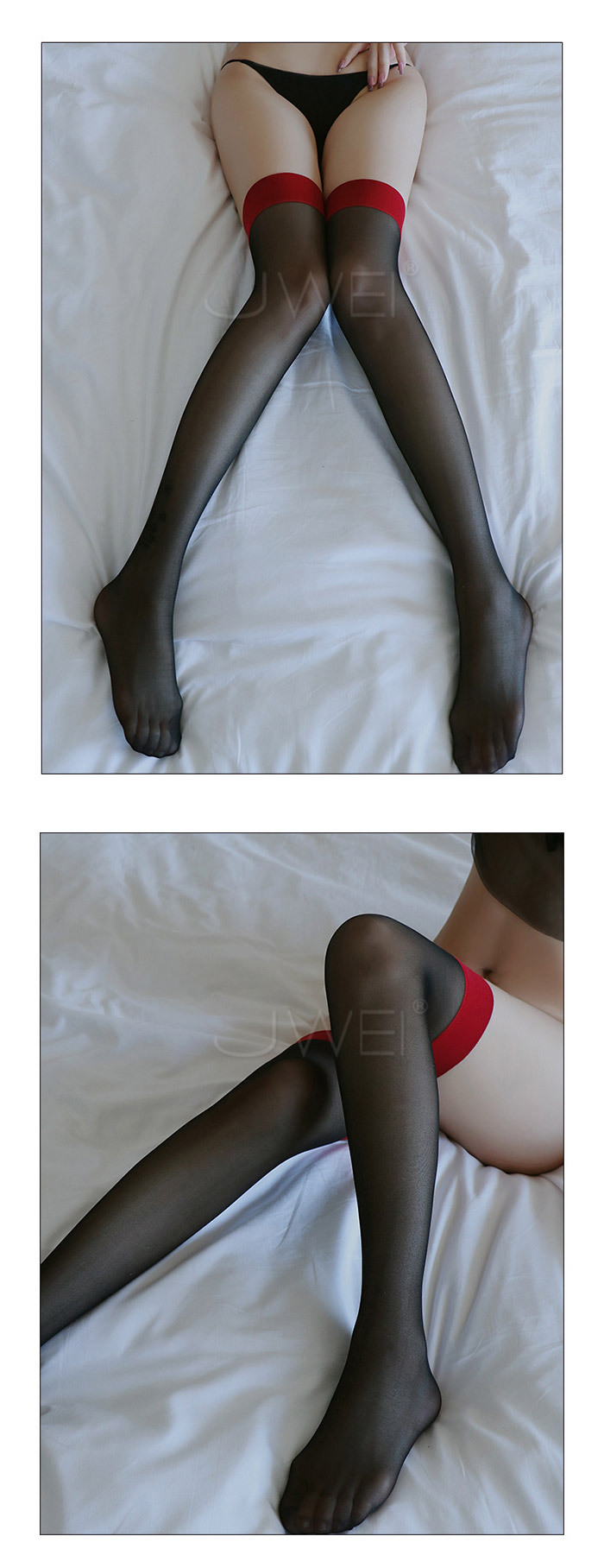 紅塵醉風.輕薄透膚寬邊拼色裸感長筒絲襪(紅邊黑襪)