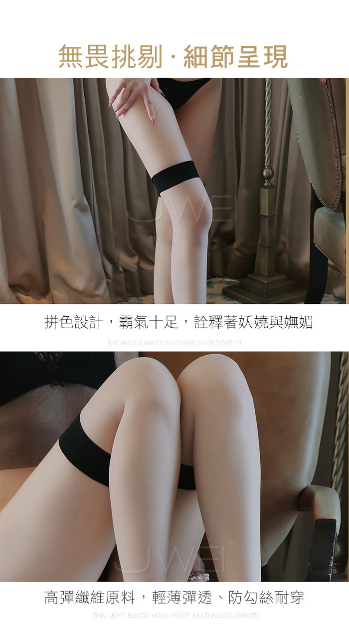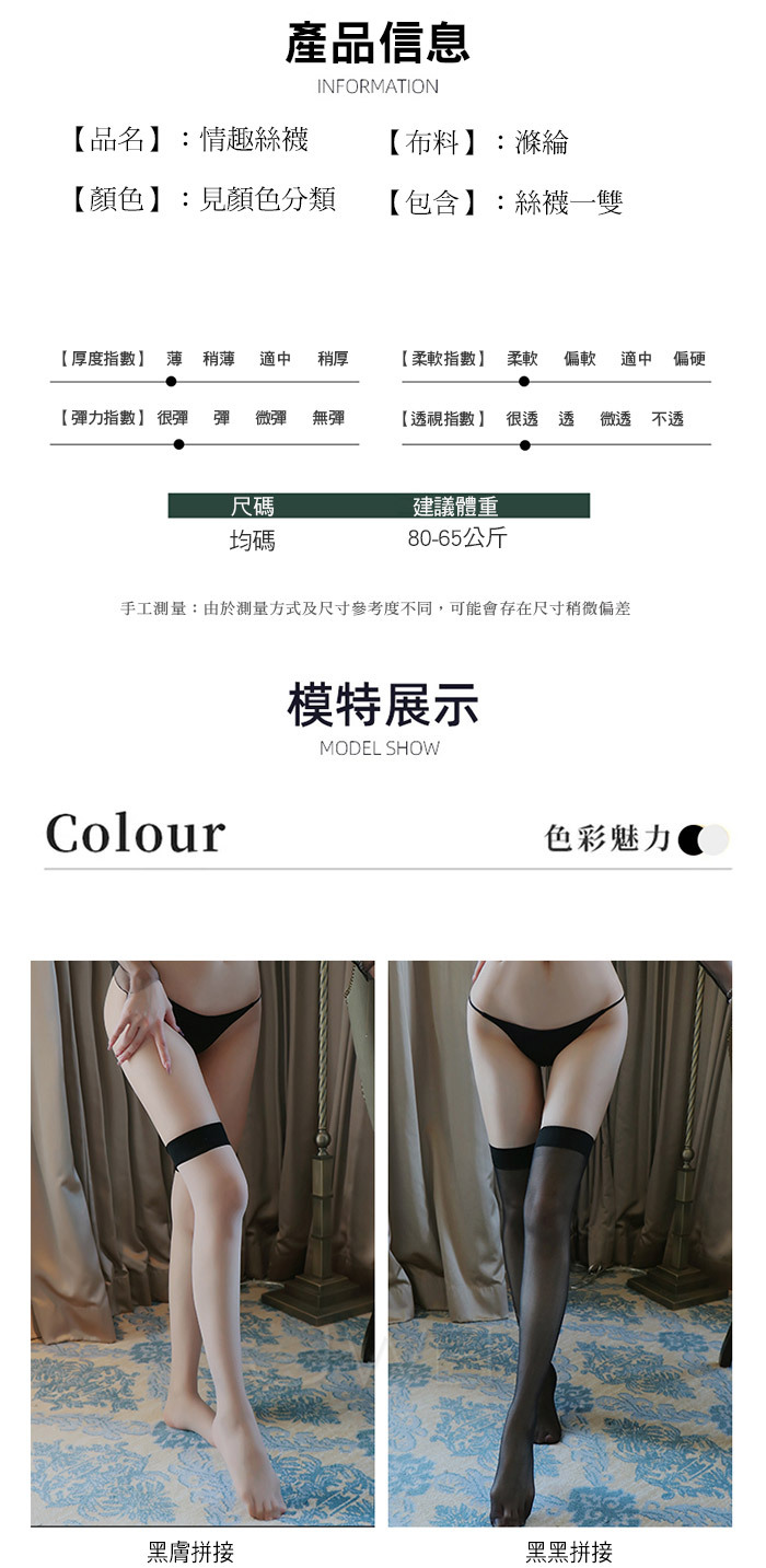 ◇◆紅塵醉風.輕薄透膚寬邊拼色裸感長筒絲襪(黑邊黑襪)◆◇