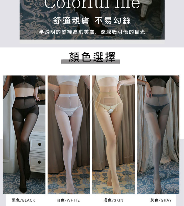 誘惑之夜.性感免脫開襠長絲襪-膚色
