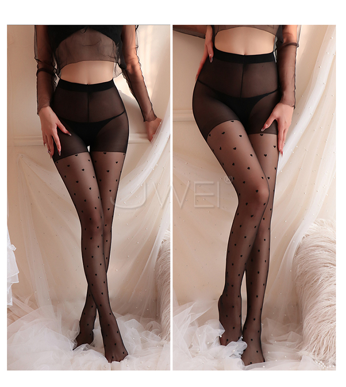 酷辣甜心.甜美心型黑絲透膚褲襪