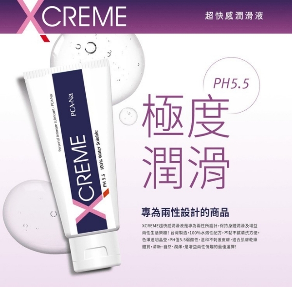 X-Crème超快感潤滑液是專爲兩性設計保持身體潤滑及增益兩性生活樂趣的配方,水溶性配方、不黏不腻、清洗方便;色澤透明晶瑩;PH值5.5弱酸性,不會刺激皮膚,就像身體自然發出的體液。配合保險套使用,效果更佳。