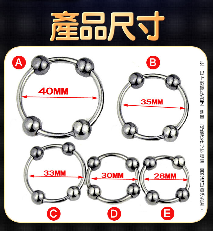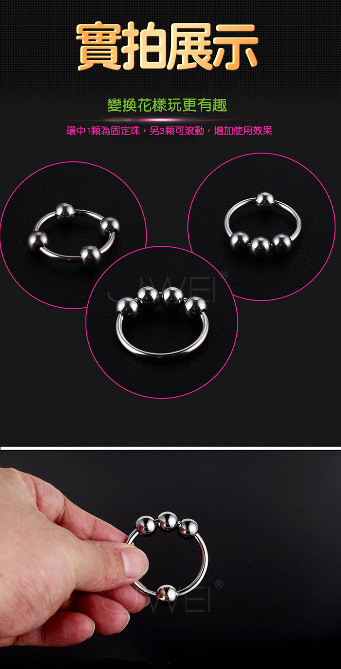 不銹鋼龜頭冠狀溝加強環 - 4入珠 可移滾動( 內徑3.3cm)男鎖精女刺激