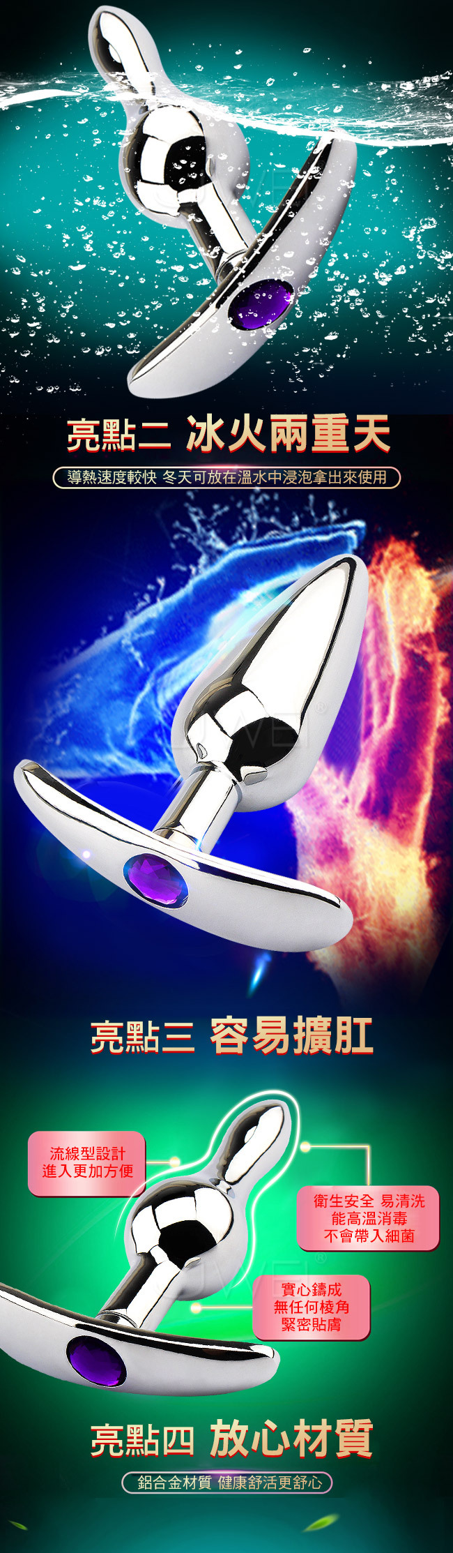 以隱密地整天戴著它,讓你貪婪地享受深入與擴張的快感,完美的曲線保持長時間的 舒適,不銹鋼的冷冽觸與重力感,加強你的敏感神經。特殊的握把,在每次的進出都 與生理結構細膩的結合著,加強著身體反應......耀眼光滑如絲緞,錚亮如鏡子的表面設 計,體現出一種尊貴的氣質。帶著它在炎熱的臥室中玩耍或者出外參加聚會時,都會 給您帶來頑皮的秘密刺激。插入端採用大型封頭設計,更加飽滿充實您,讓您領略長 期的滲透感與舒適度。每一吋的前進,都在引燃身體的慾火;每一吋的深入,都碰觸 柔軟潮濕的地帶。材質獨特,您可以輕易地清理、擦拭與保存。不銹鋼擁有低比熱的 特性,雖然一開始觸感冰冷,但卻會隨著體溫而迅速改變─在炎熱的夏季,可以保持 冰涼而享受其它材質無法比擬的清涼舒爽;在冰冷的冬季可以用暖暖包或者熱水加熱 而享受更舒服的溫暖體驗。
