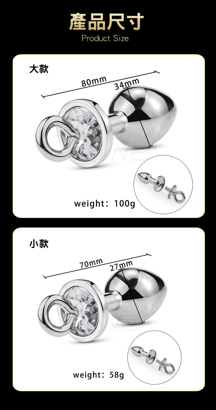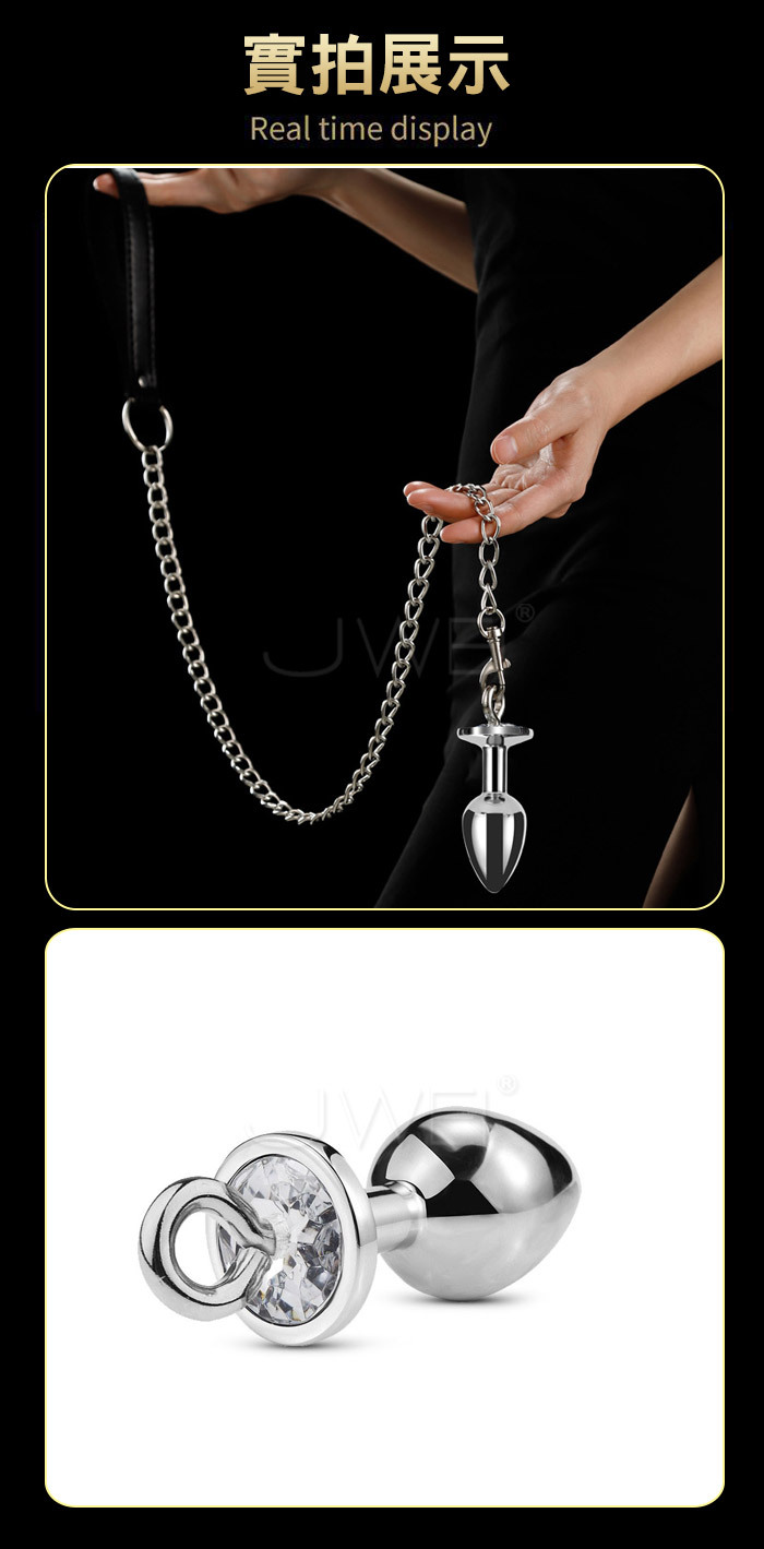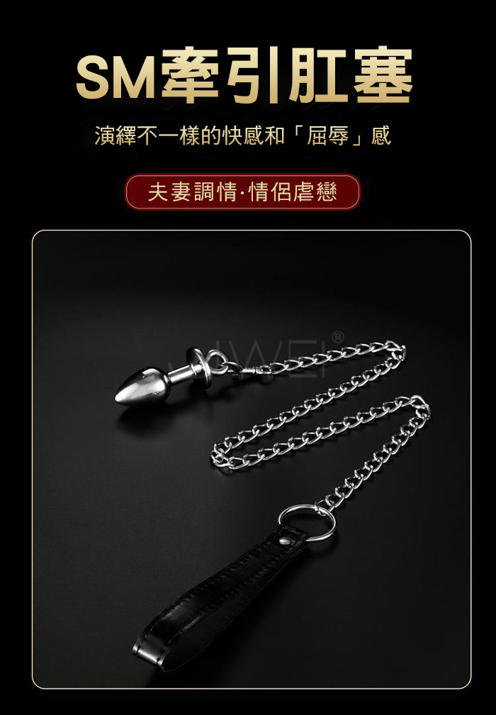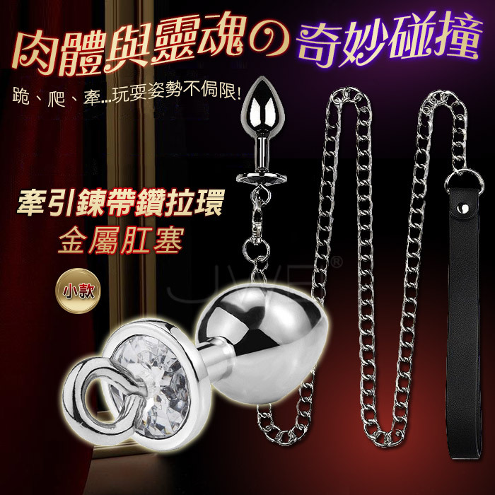SM 閨房調教遊戲 牽跪爬 牽引鍊帶鑽拉環金屬肛塞-小
