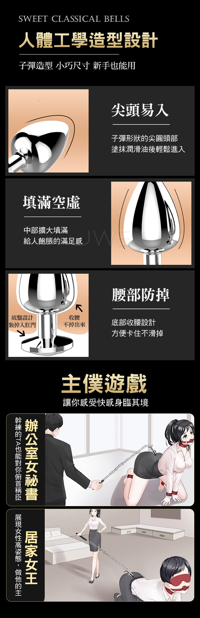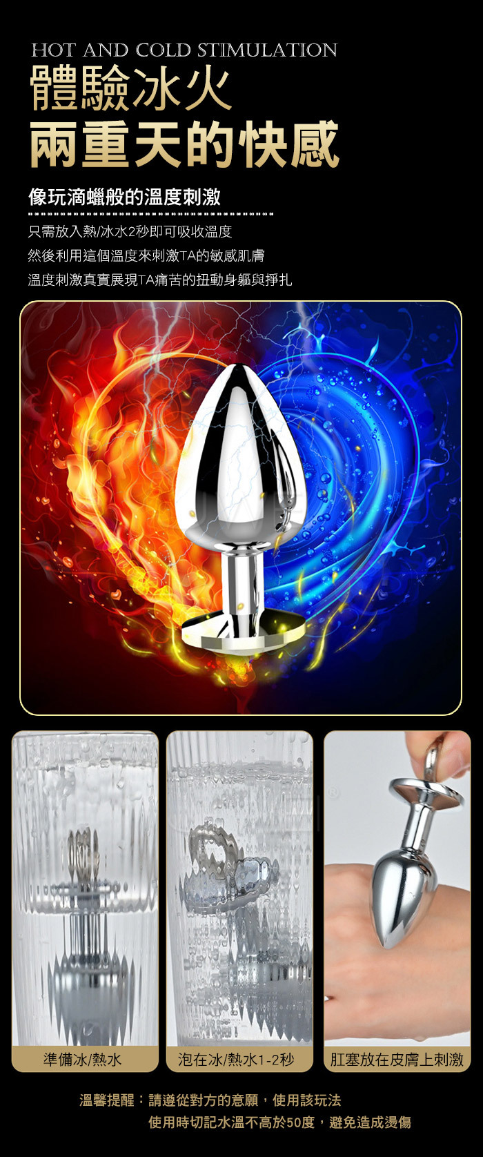 SM牽引肛塞,夫妻調情、情侶虐戀,演繹不一樣的快感和「屈辱」感;人體工學造型設計,小巧尺寸新手也能用,尖頭易入,子彈形狀的尖圓頭部,塗抹潤滑油後輕鬆進入,中部擴大填滿,給人飽脹的滿足感,底部收腰設計,方便卡住不滑掉;體驗冰火兩重天的快感,像玩滴蠟般的溫度刺激,讓你感受快感身臨其境!