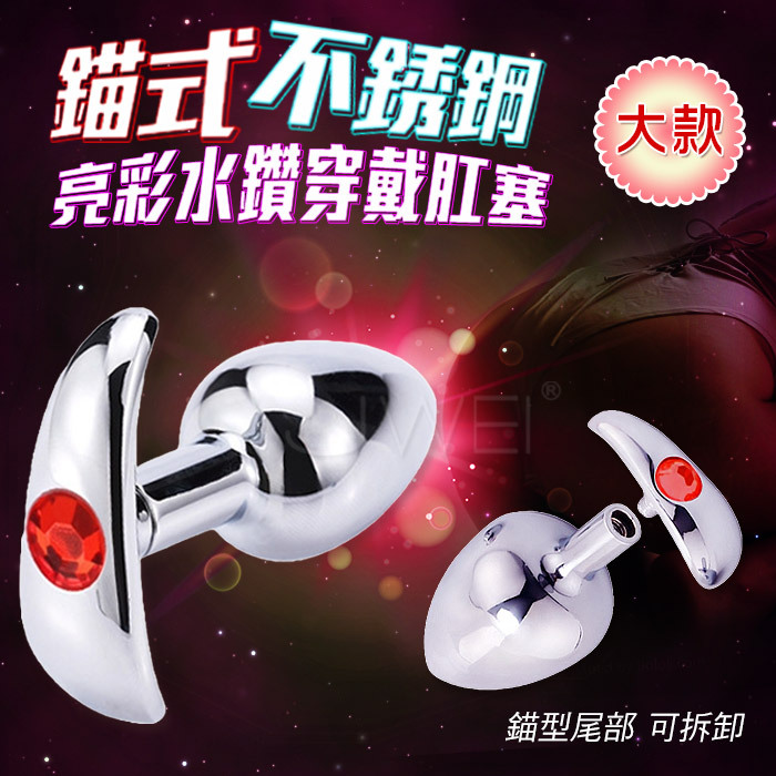 錨式不銹鋼亮彩水鑽穿戴肛塞-大