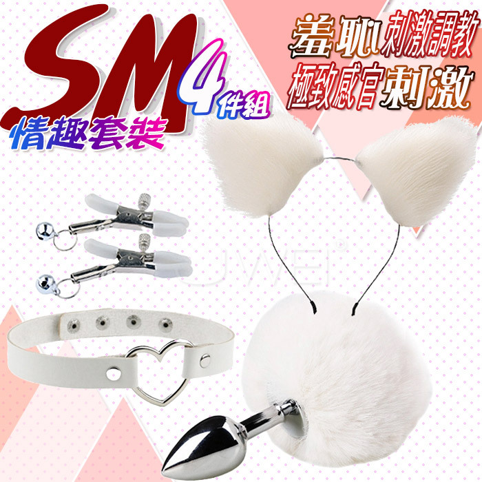SM閏房情趣絨毛耳朵髮夾乳夾尾巴後庭肛塞情趣套裝4件組-白