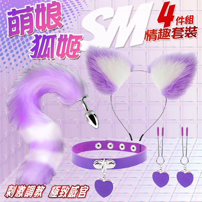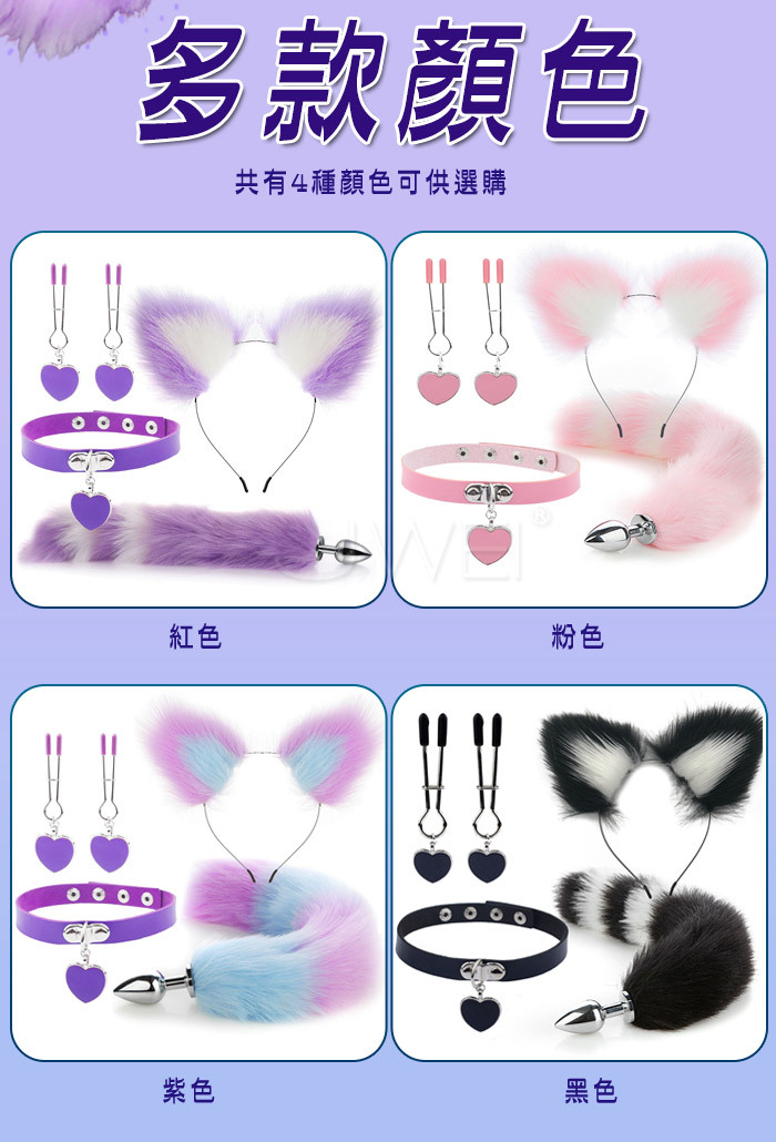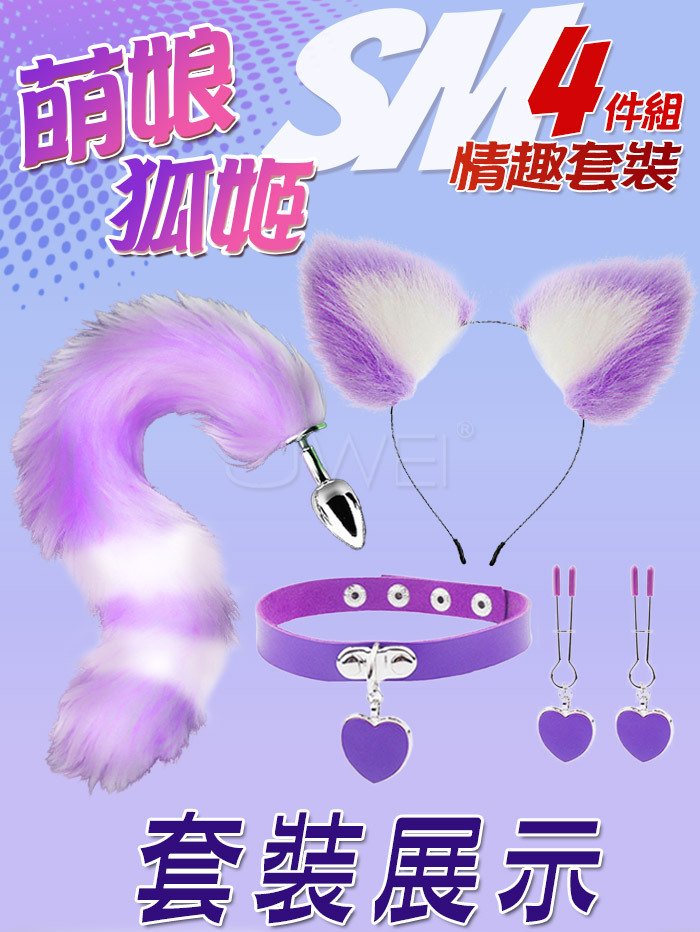 萌娘狐姬.裝扮遊戲4件套組﹝狐狸尾巴+毛絨髮箍+愛心頸圈+愛心乳夾﹞紫色