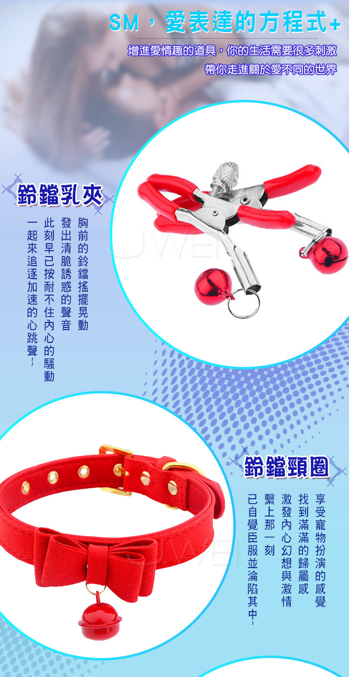 鈴鐺乳夾,胸前的鈴鐺搖擺晃動,發出清脆誘惑的聲音,此刻早已按耐不住內心的騷動,一起來追逐加速的心跳聲!