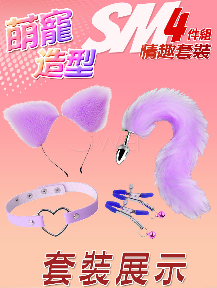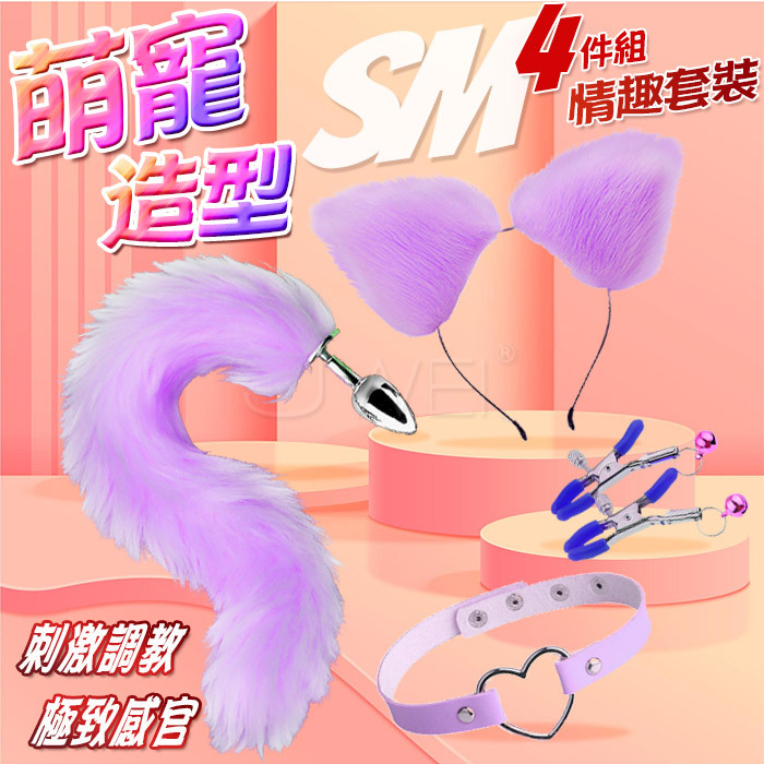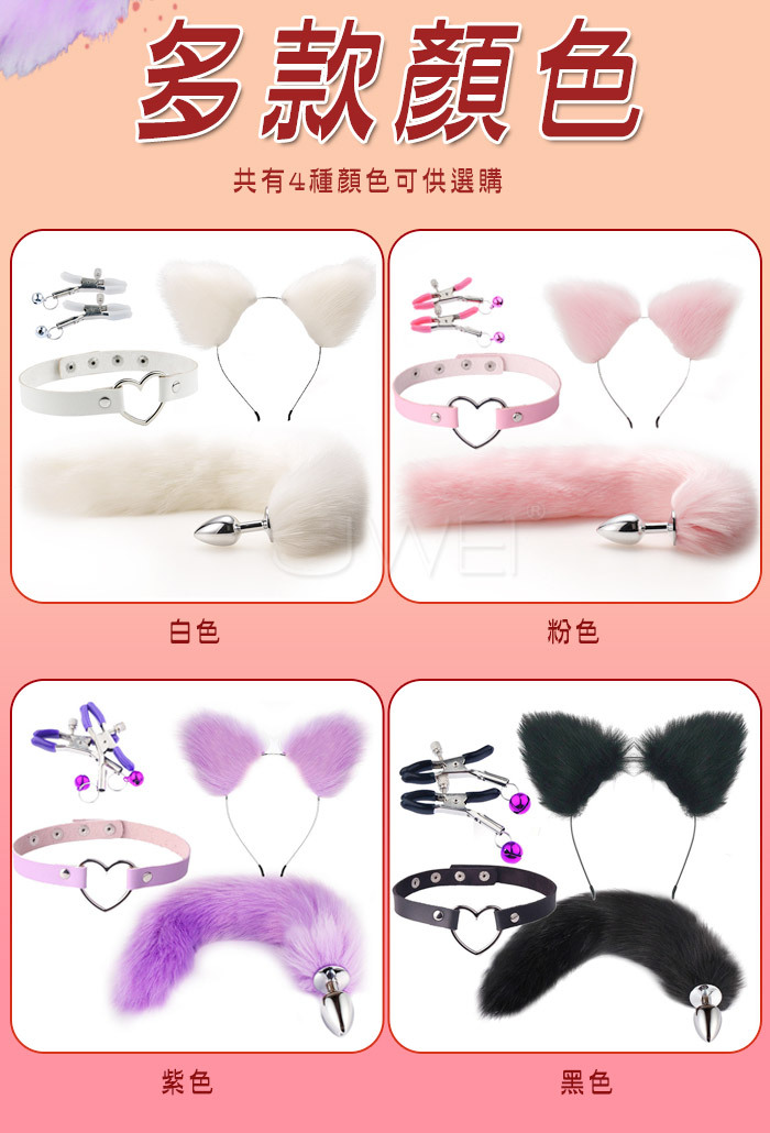 狐狸新娘.裝扮遊戲4件套組﹝狐狸尾巴+毛絨髮箍+愛心頸圈+鈴鐺乳夾﹞紫色