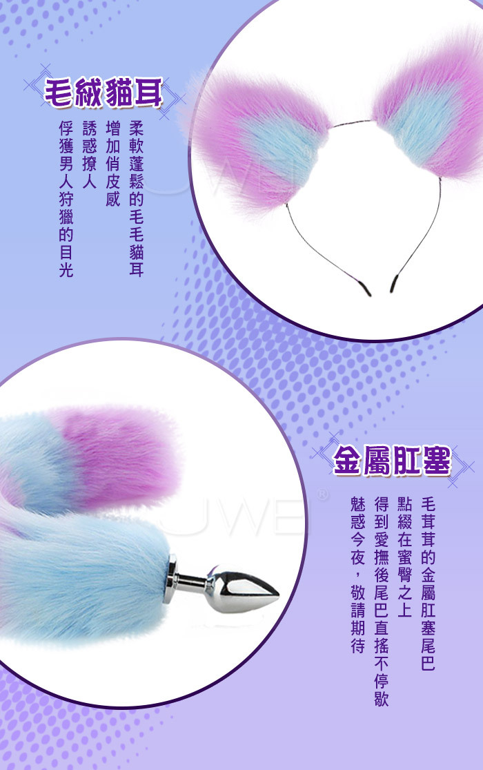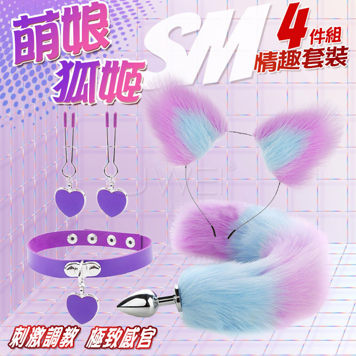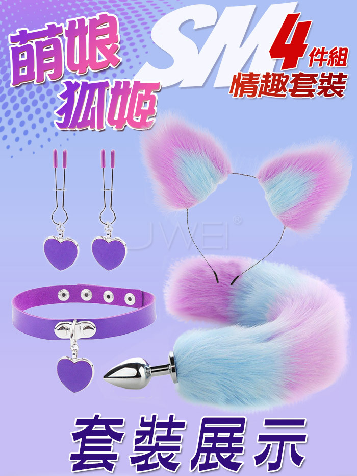 萌娘狐姬.裝扮遊戲4件套組﹝狐狸尾巴+毛絨髮箍+愛心頸圈+愛心乳夾﹞藍紫