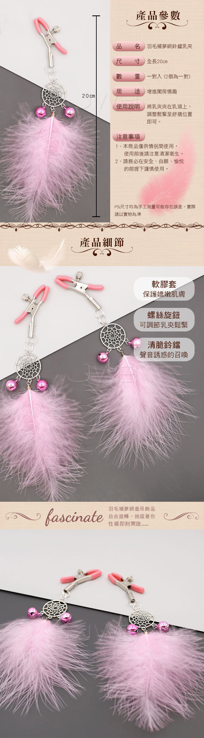 閨房情趣.柔情羽毛補夢網鈴鐺乳夾-粉