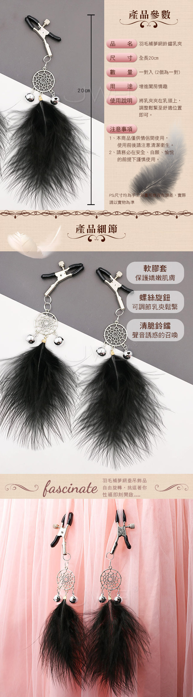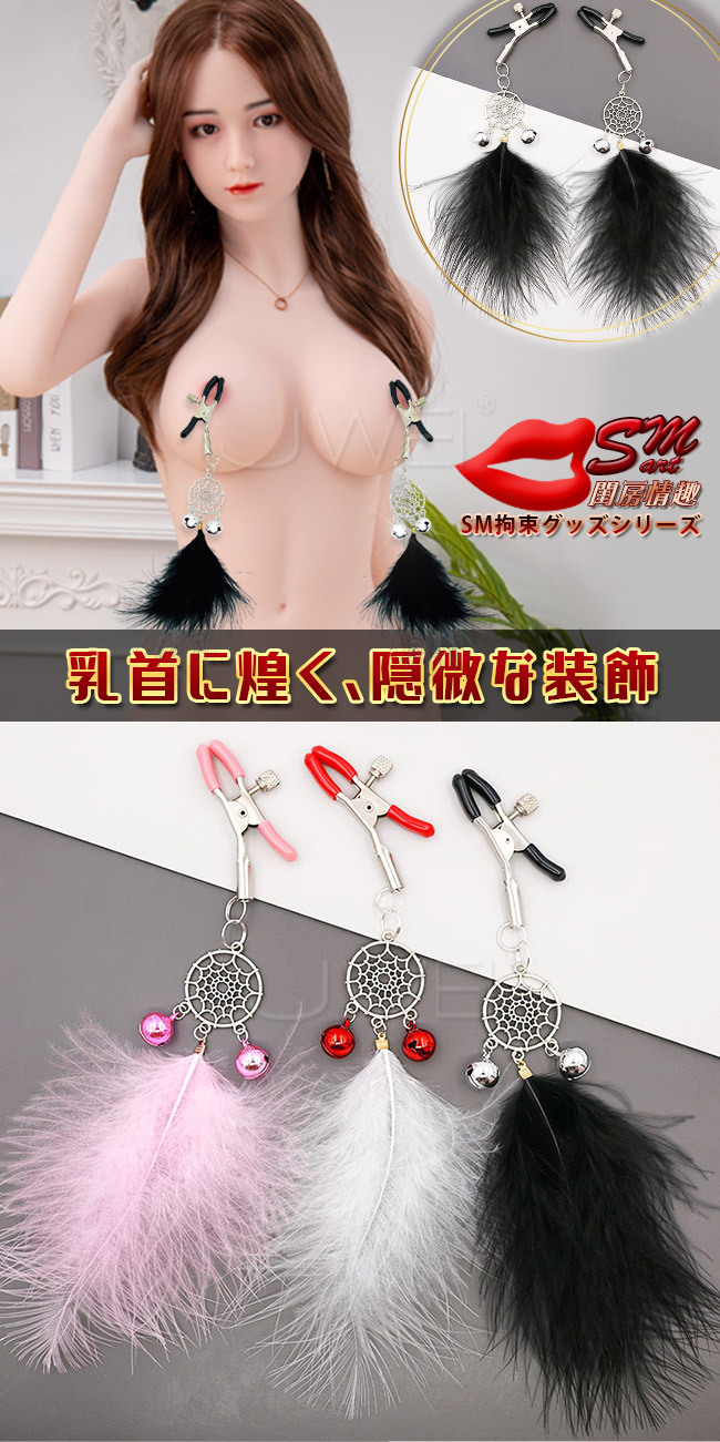 閨房情趣.柔情羽毛補夢網鈴鐺乳夾-黑
