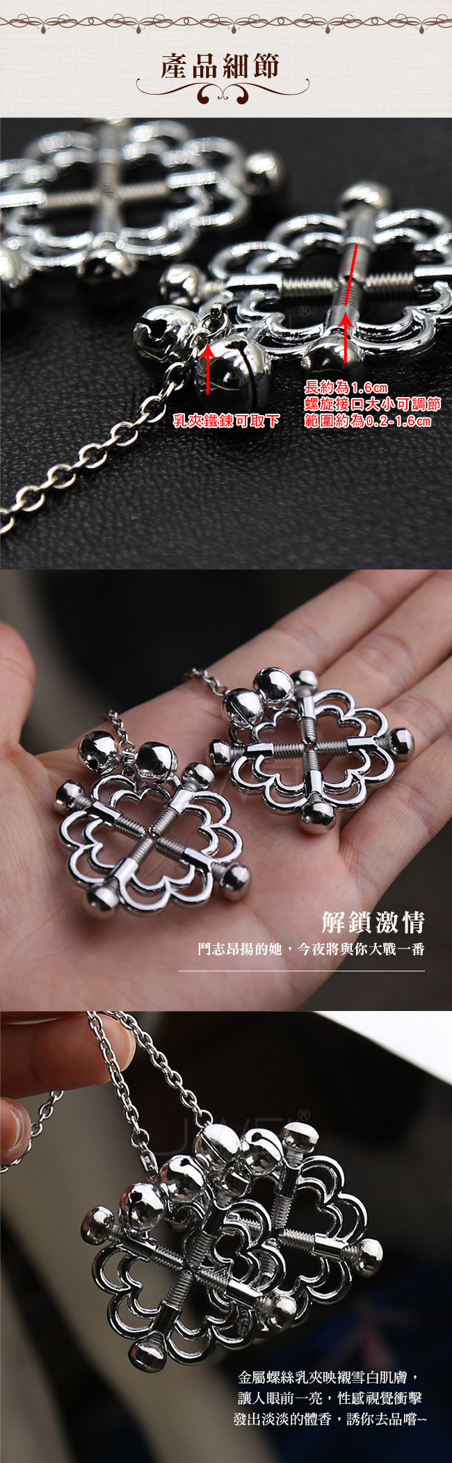 閨房情趣.奢華花型鈴鐺長鏈金屬螺絲乳夾