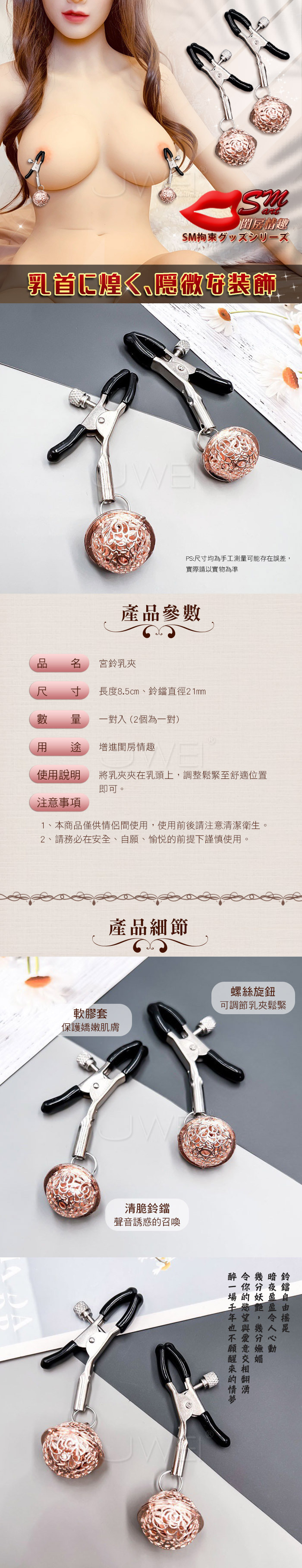 閨房情趣.宮鈴乳夾-玫瑰金