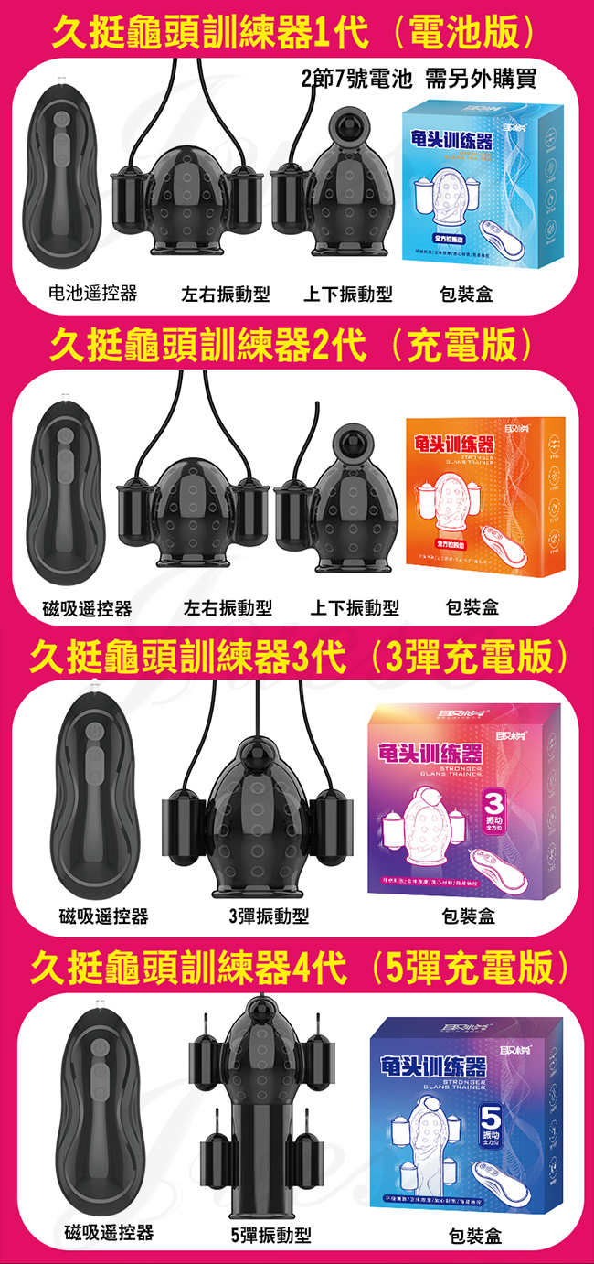 久挺第二代 12段變頻全方位龜頭訓練器-雙頭套組-充電款