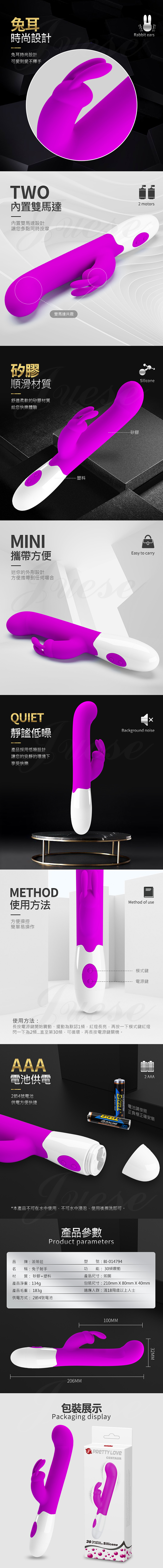 兔子射手 30段變頻雙馬達矽膠按摩棒-電池款