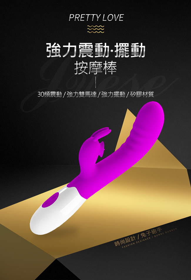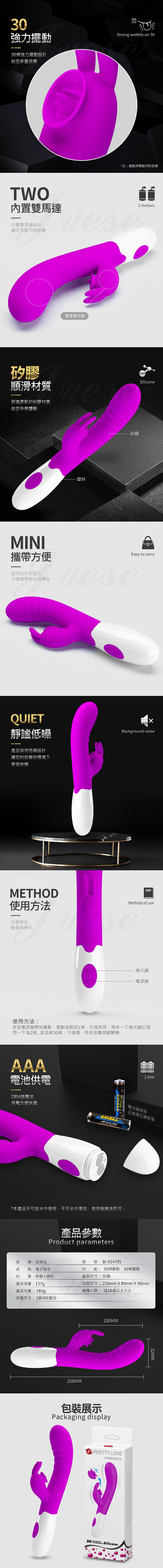 兔子砲手 30段變頻雙馬達舌舔矽膠按摩棒-電池款