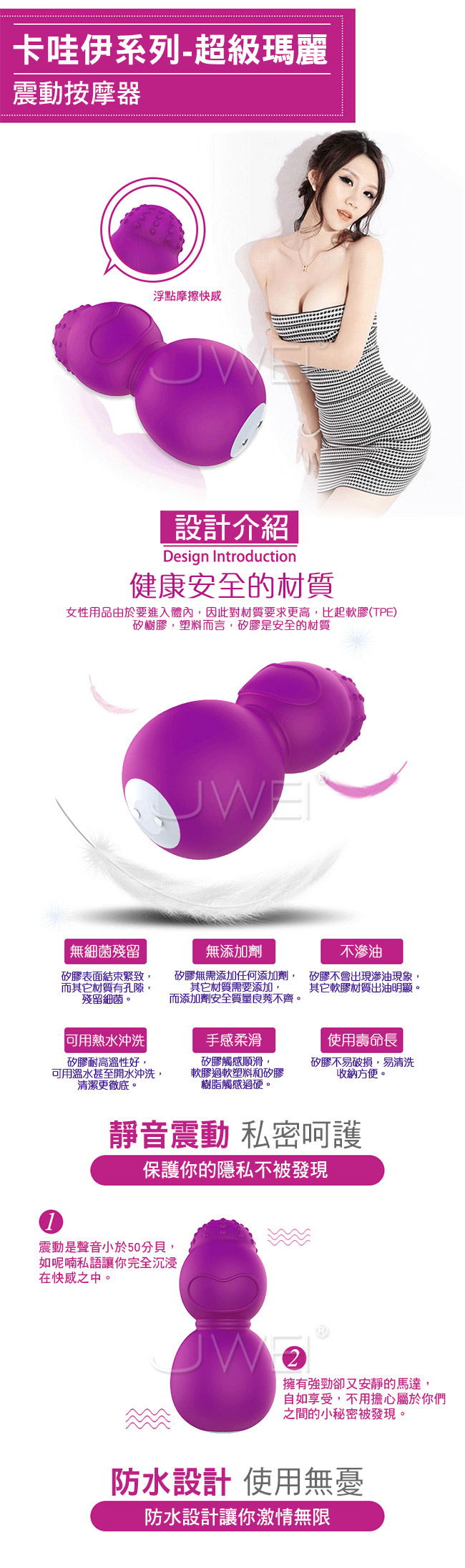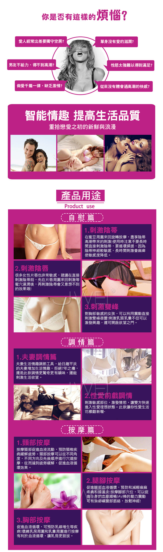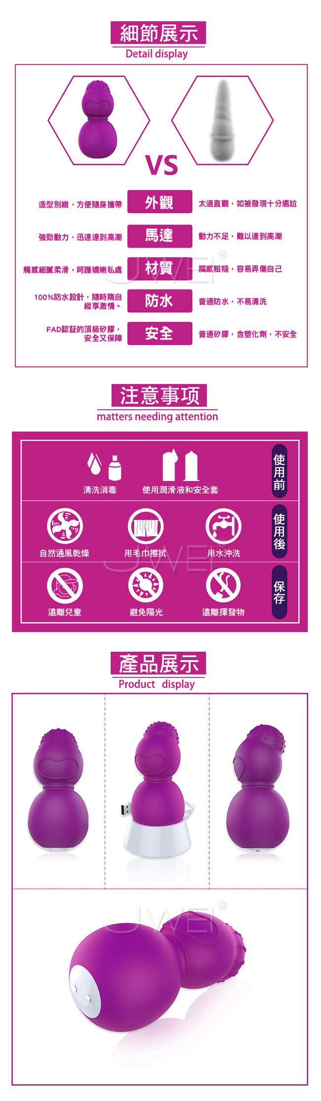 此款由於要進入體內因此對材質要求更高,比起矽樹膠、塑膠而言,矽膠是安全的材質,讓您更安心使用。且靜謐防水設計,保護您的隱私不被發現,如呢喃私語讓你完全沉浸在快感之中,不受場地所束縛。大小適宜,一手掌握,握感舒適。造型時尚呆萌可愛,令人愛不釋手一體設計,擺脫有線束縛。