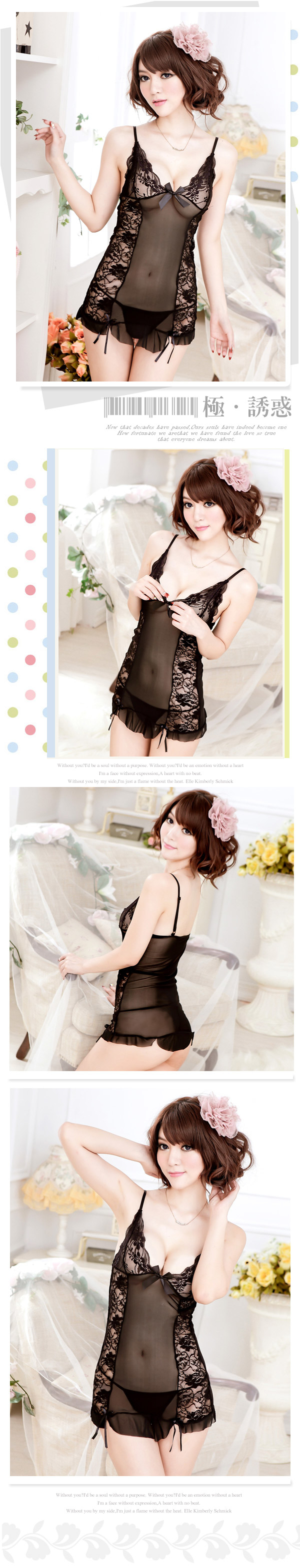 此款睡衣特別採用網紗與緹花蕾絲搭配,