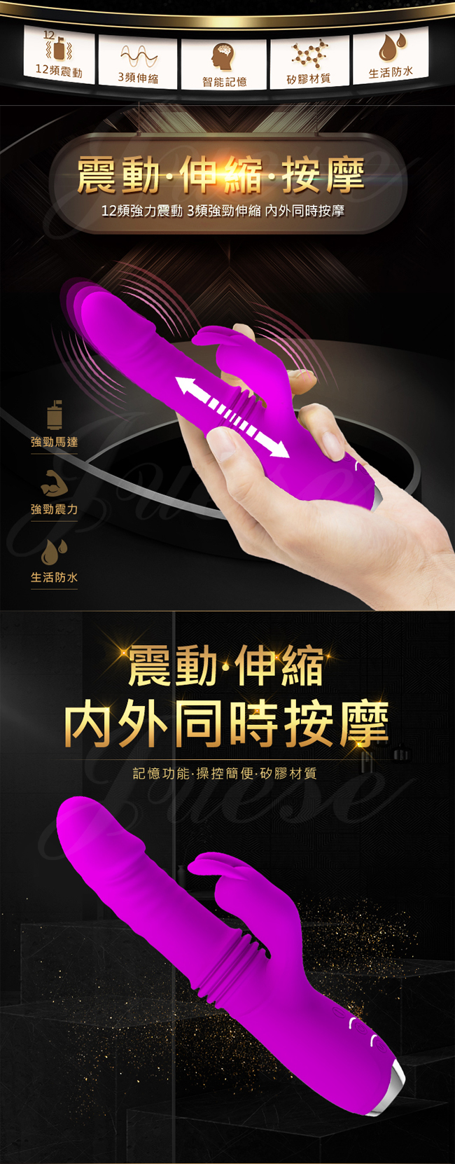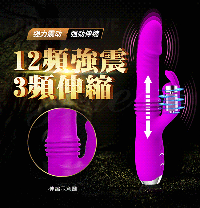 多羅西 12段震動x3段伸縮 智能記憶伸縮按摩棒-紫
