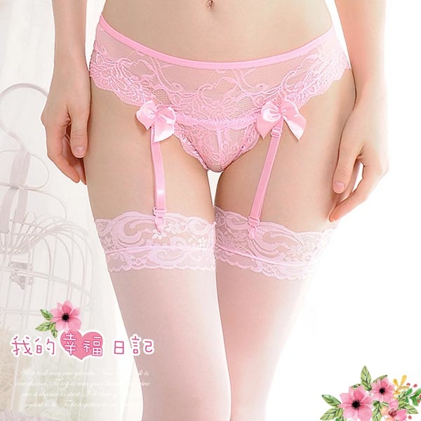 夜魅情人‧透視蕾絲吊襪帶+大腿蕾絲絲襪(粉)