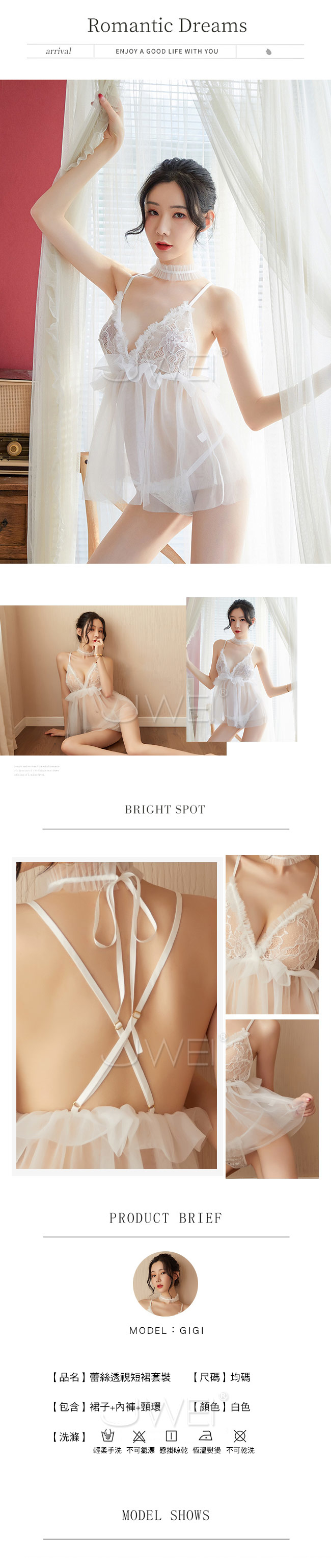 專屬佔有.透視網紗蕾絲吊帶睡裙三件組