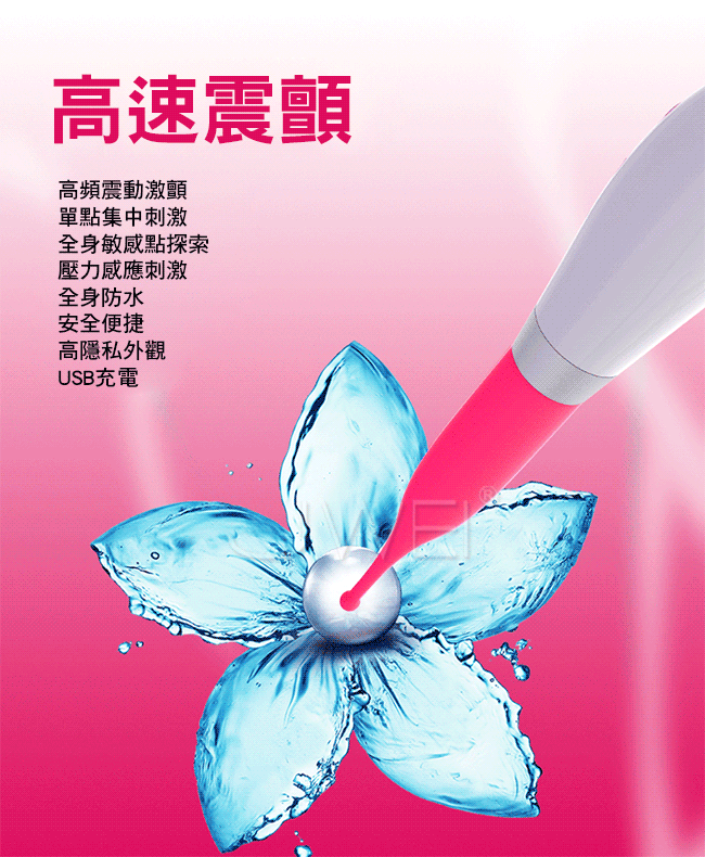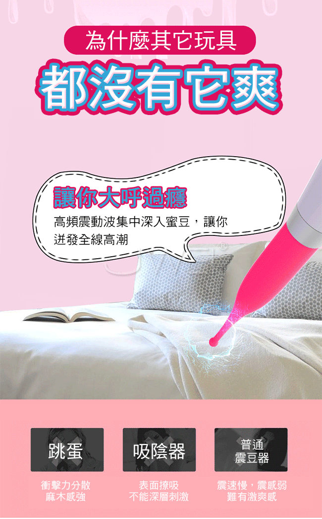 你沒有玩過的新玩具可愛萌兔造型高頻震動蜜豆棒,激顫單點集中刺激全身敏感點探索,10段變頻高頻震動波集中深入蜜豆,讓你迸發全線高潮。低音防水功能如戀人的私慾體貼入微,重量比手機還輕,大小比牙刷還小,放在包包裡毫無壓力喔~