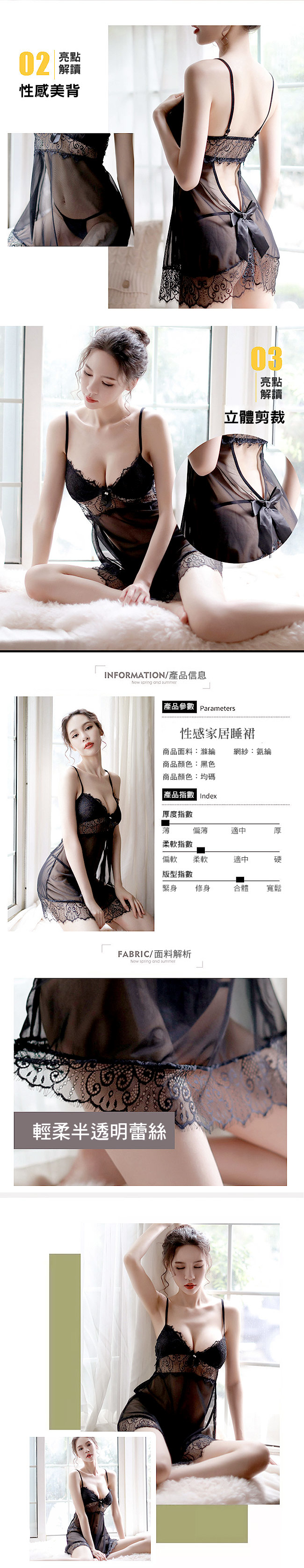 微加幸福.優雅刺繡透視情趣吊带睡衣