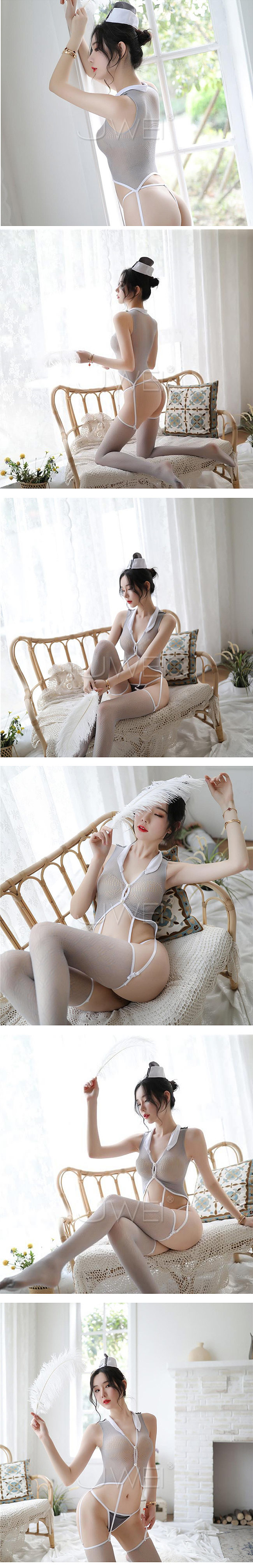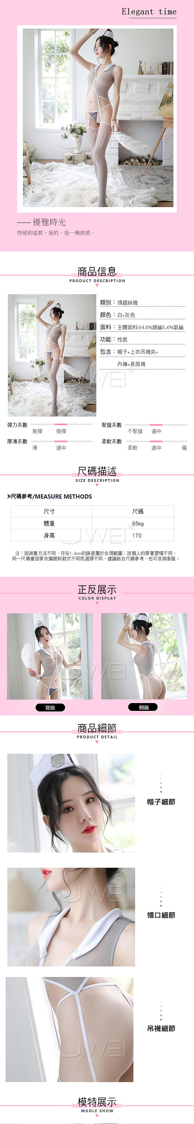 ■內容物:帽子x1、網狀連身衣(含吊襪帶)x1、丁字褲x1、襪子x1