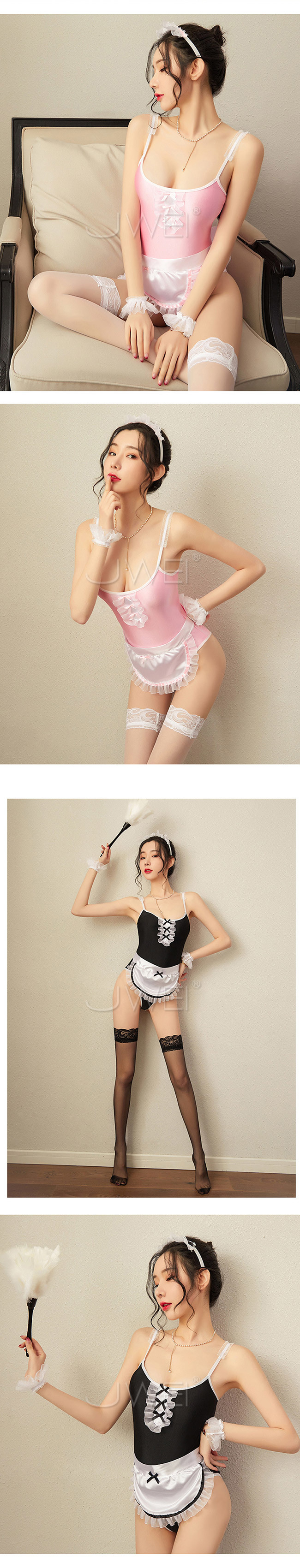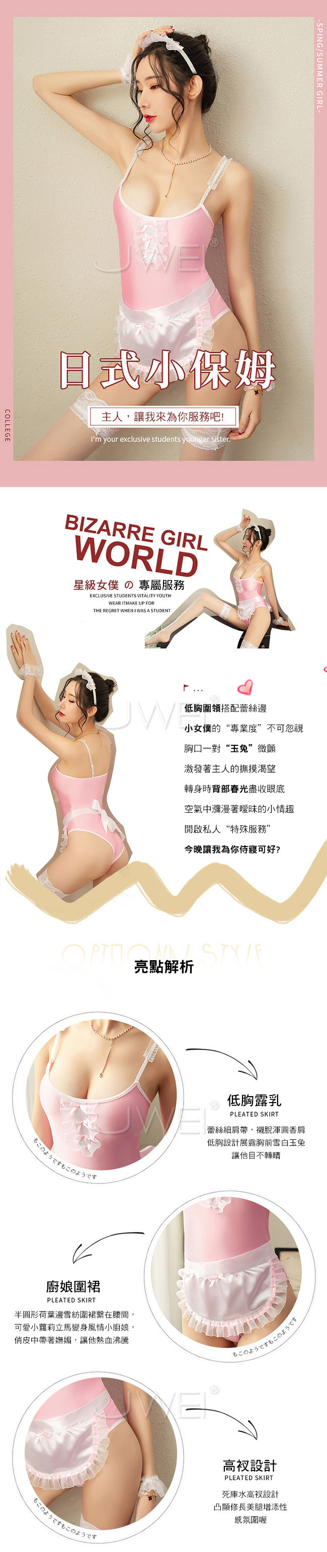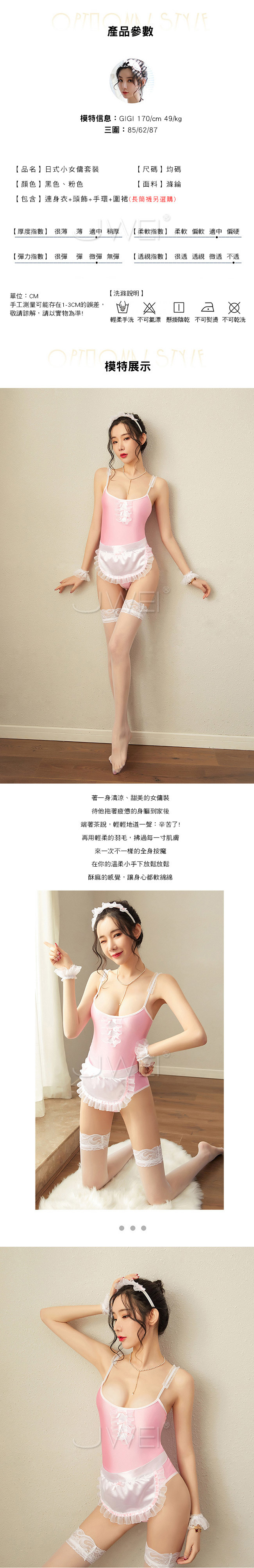 ◇◆日式小保姆.低胸高衩連身女僕裝四件組(粉色)◆◇