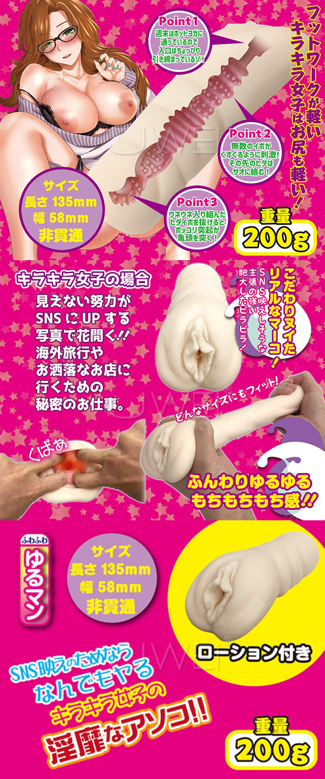 SNS映えのためならなんでもヤるキラキラ女子の淫靡なアソコを再現した、主張の強い肥大したビラビラが特徴的なオナホ。 ドスケベなゆるマンが、誰それ構わずのみ込み、包み込み、全体を刺激するふわふわ形状。 奥には入り組んだイボとヒダがあり、最奥部にはポッコリ突起が亀頭を突きます。 見えない努力が女子力の高さの秘訣!! スケベ女に思いっきり射精したい男性必見の卑猥なホールです。 記録的なヒット「2.5次元シリーズ」の一品。