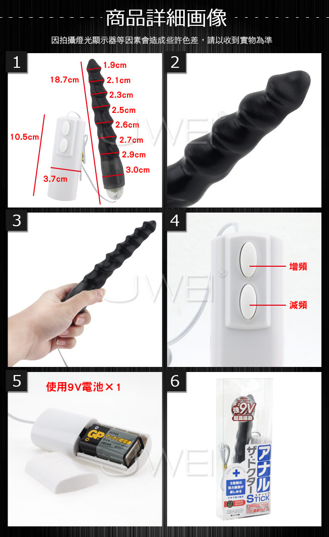 アナル開発に最適!ハイパワー9V電動タイプのディルドが登場!!片手で楽々操作ができ、5段階の強力振動が楽しめます。