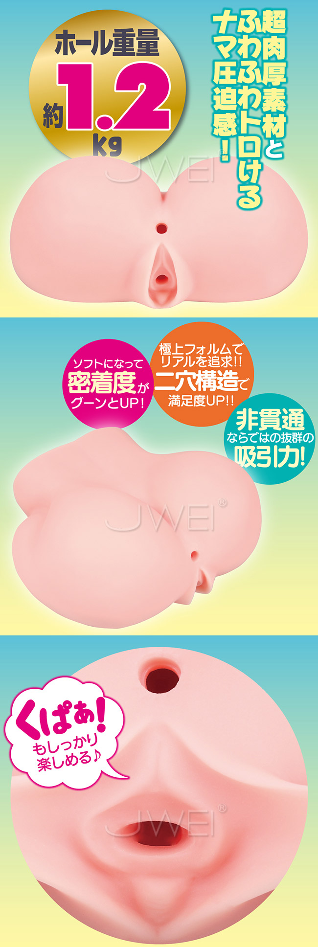 男の浪漫!大人気シリーズの元祖「ぷにあな」にソフトverが登場っ!ソフトになって絡みつきが倍増、まったり快感が楽しめます!狭いのにぷにぷにで無造作ツブツブ・うねり形状がとっても刺激的な可愛いアソコと、包み込む刺激が味わえる無限リング型ヒダヒダのア○ルがあなたのお○ん○んをお出迎え!プリンとした肌質も、くぱぁもそのまま完全再現♪2穴で楽しみ方倍増なのに、重さも1.2kgで重量感たっぷりだから超お買い得!安心の日本製。