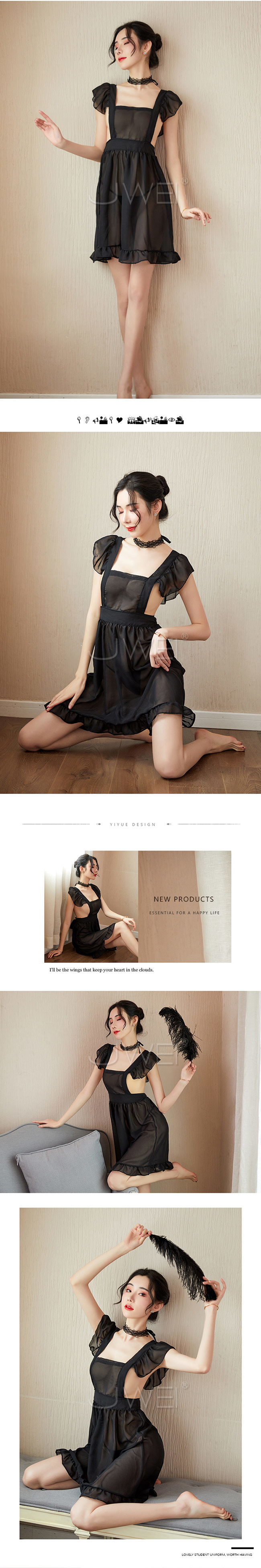 柔情攻勢.雪紡透視性感誘惑女僕套裝二件組(黑色)