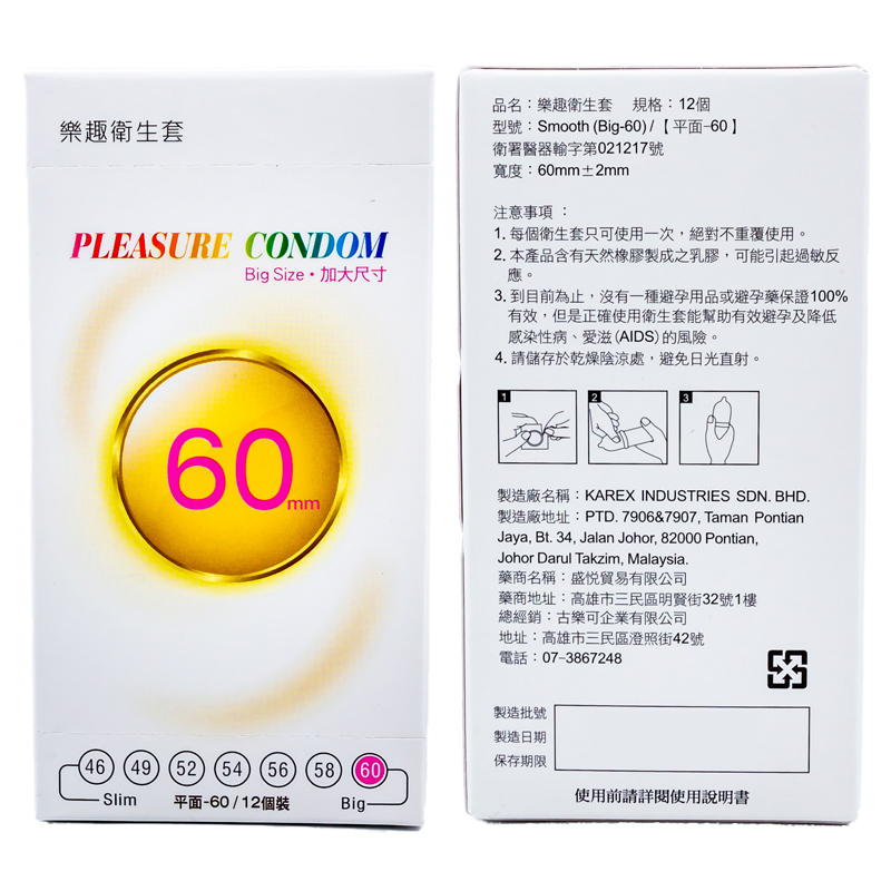 樂趣 超薄 超大尺寸 60mm 衛生套 保險套 12入 *3