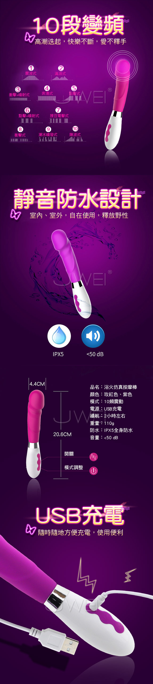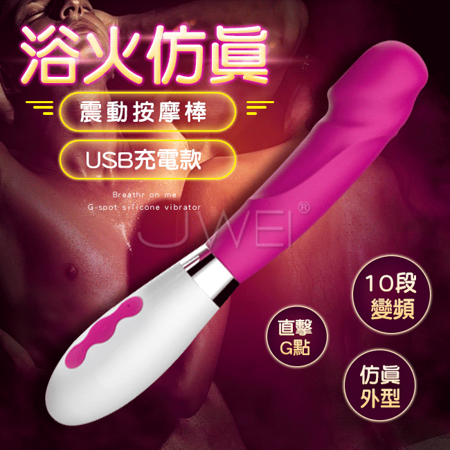 浴火仿真.10段變頻防水G點按摩棒-玫紅色(USB款)