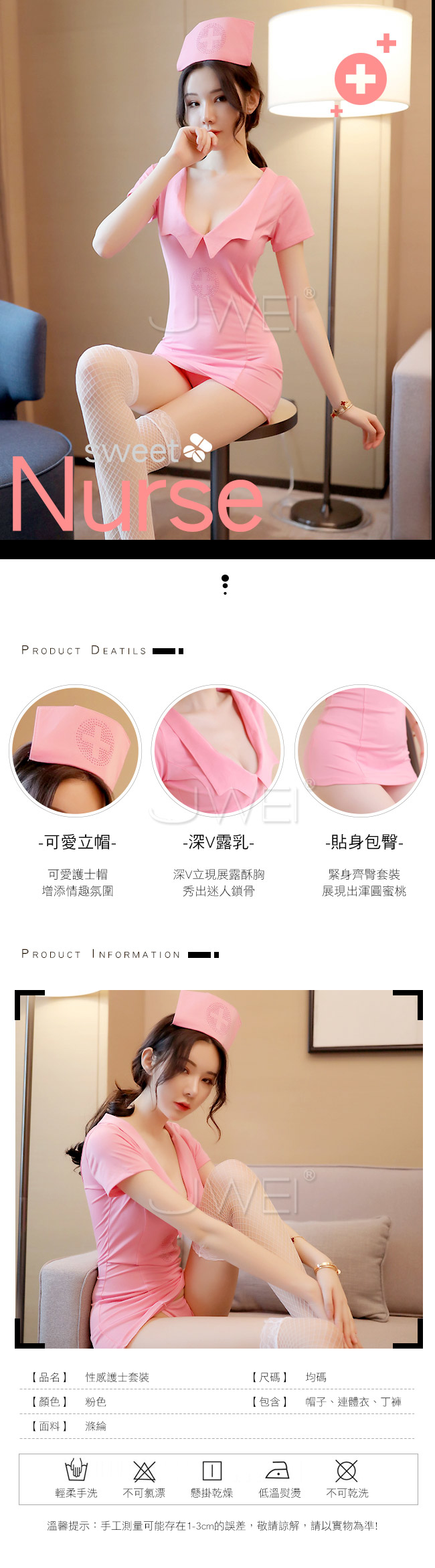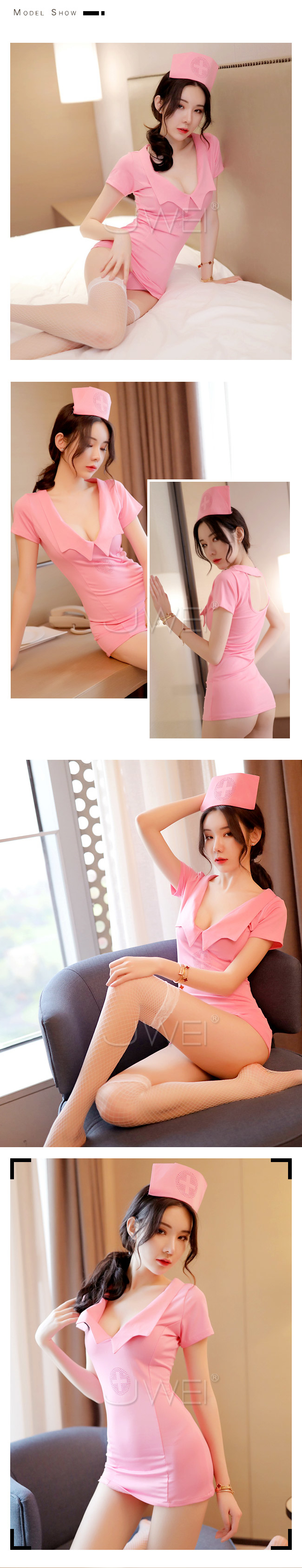 漫漫甜心.連身性感護士服三件組(粉色)