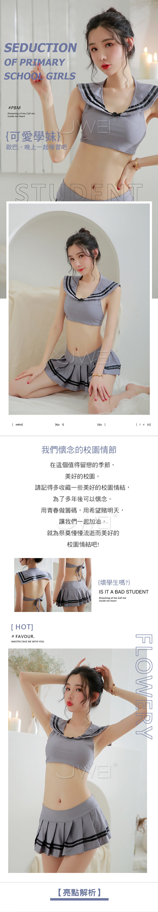 ◇◆熱戀禁區.性感露背綁帶分體式學生制服2件組◆◇